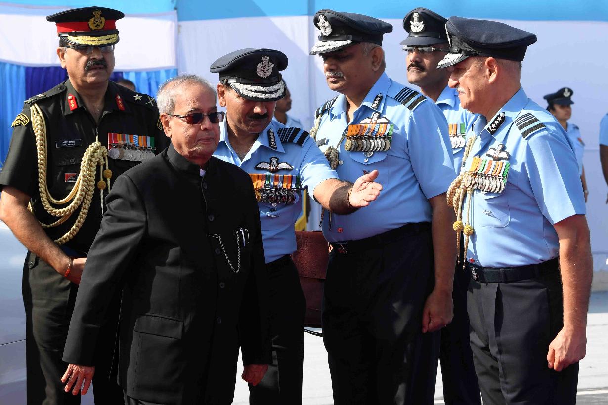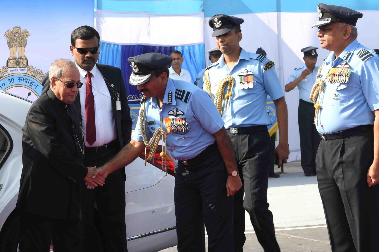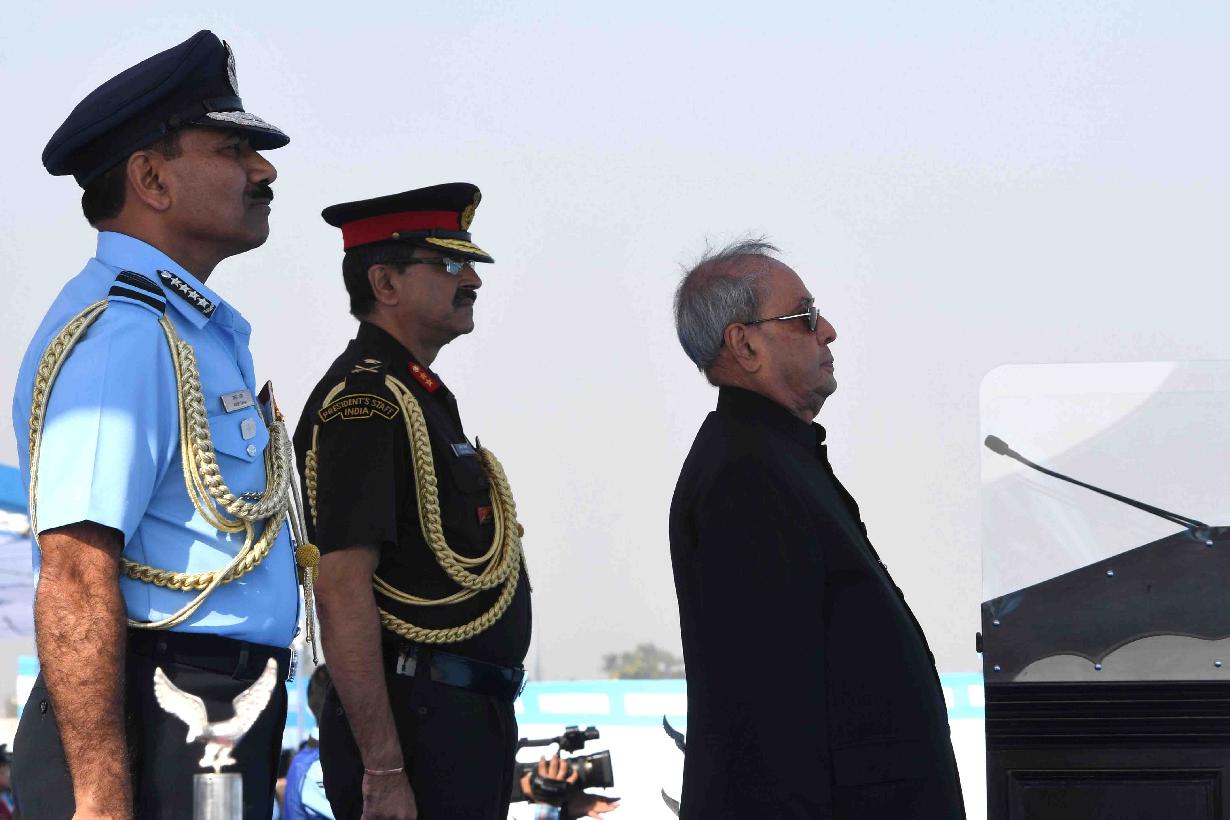 | Caption: | The President of India, Shri Pranab Mukherjee during the presentation of Standard to 501 Signal Unit and 30 Squadron of Indian Air Force, at Air Force Station Ambala, in Haryana on November 10, 2016. |