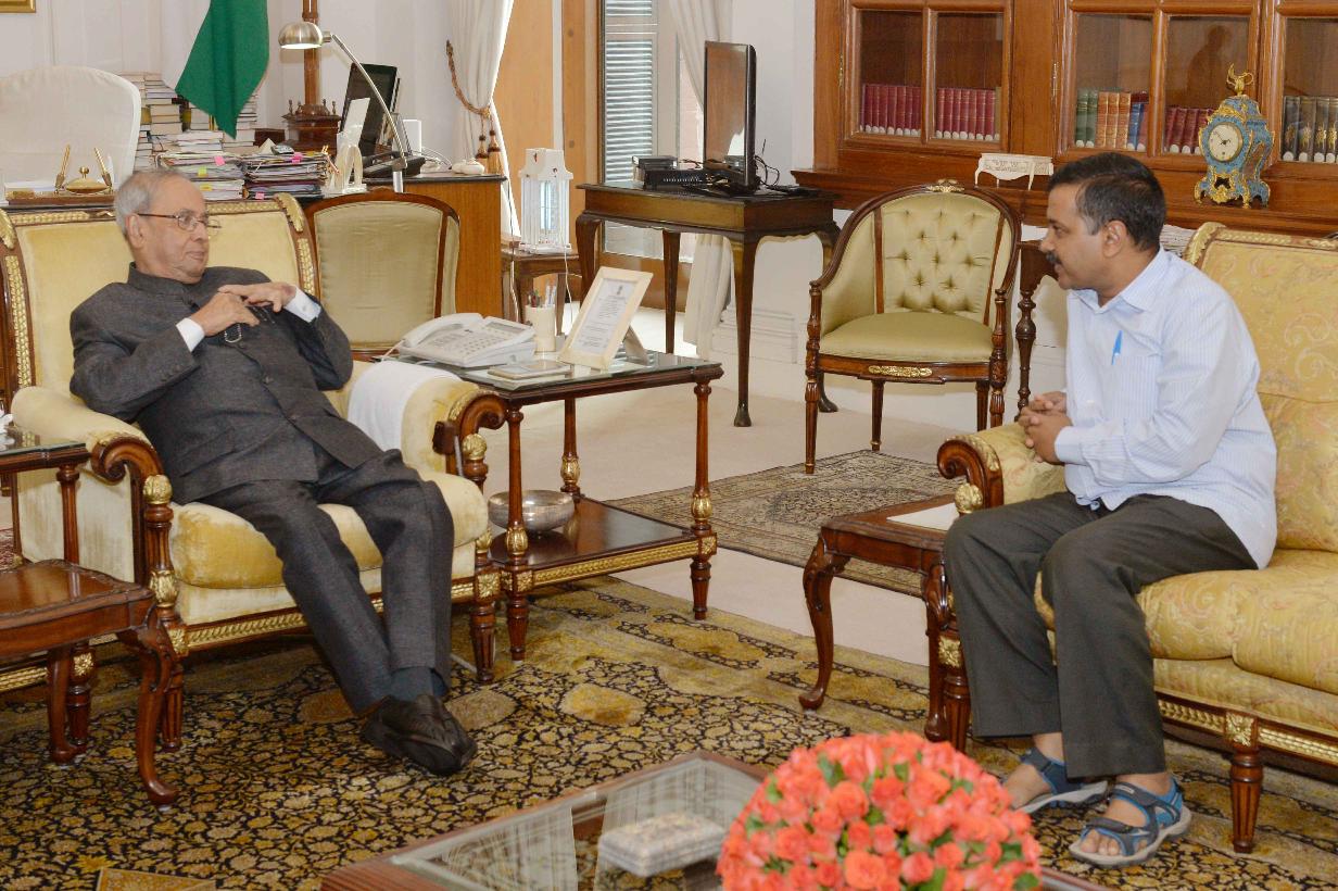 | Caption: | The President of India, Shri Pranab Mukherjee meeting with Shri Arvind Kejriwal, Chief Minister of Delhi, at Rashtrapati Bhavan on November 06, 2016. |