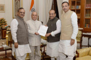 | Caption: | The President of India, Shri Pranab Mukherjee meeting with Shri Vijender Gupta, Leader of Opposition, Delhi Legislative Assembly alongwith Shri Om Prakash Sharma and Shri Jagdish Pradhan, BJP MLAs, Delhi, at Rashtrapati Bhavan on November 22, 2016. |
