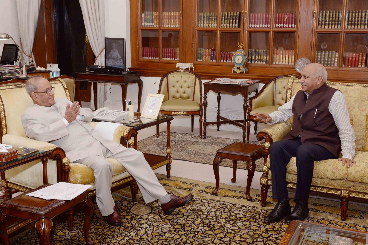 | Caption: | The President of India, Shri Pranab Mukherjee meeting with Shri M.J. Akbar, Minister of State for External Affairs, at Rashtrapati Bhavan on November 22, 2016. |
