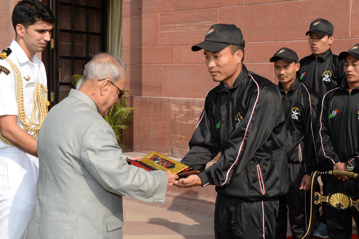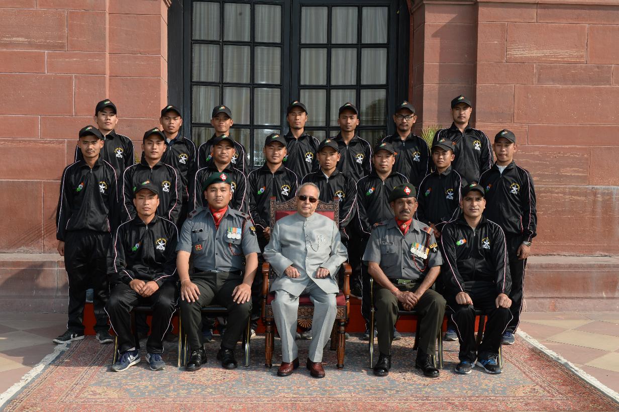 | Caption: | The President of India, Shri Pranab Mukherjee with the youths from Zunheboto district of Nagaland attending National Integration Tour, organised by the 5 Assam Rifles, at Rashtrapati Bhavan on November 24, 2016. |