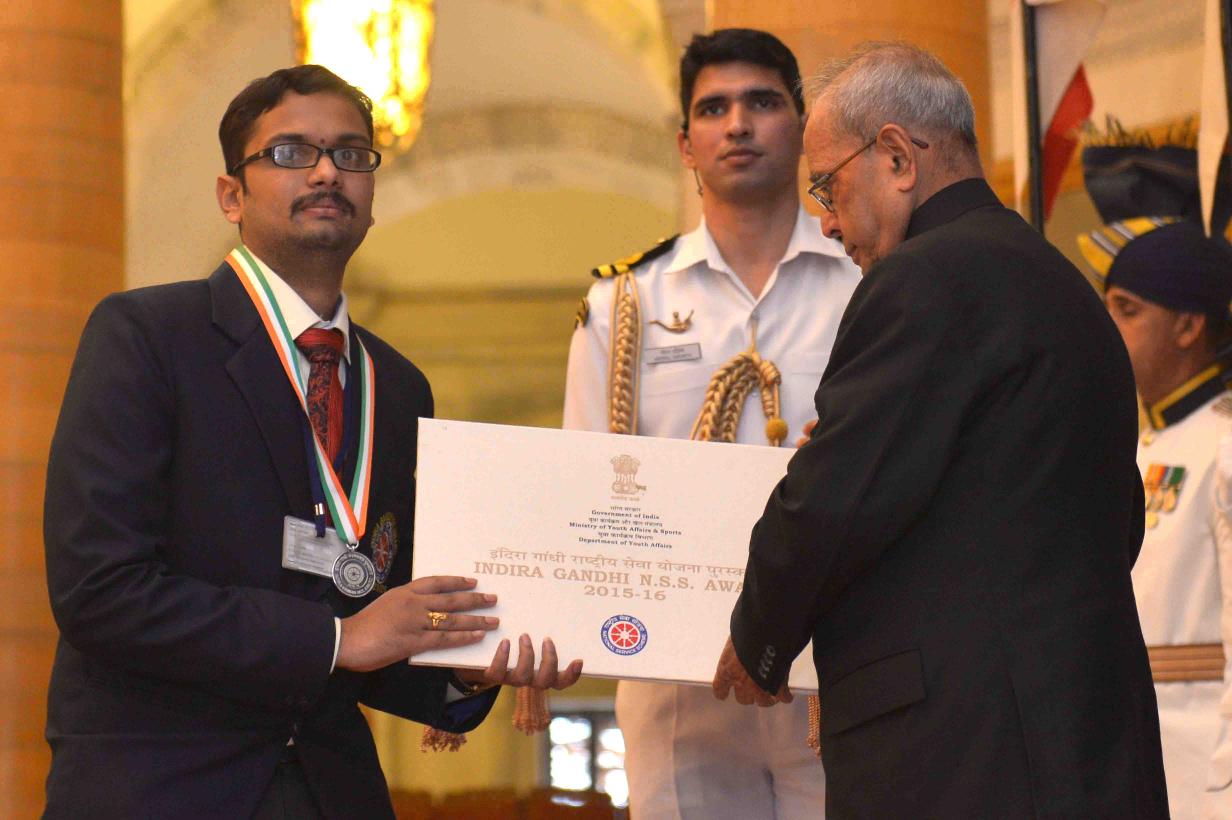 | Caption: | The President of India, Shri Pranab Mukherjee presenting the Indira Gandhi National Service Scheme Awards, at Rashtrapati Bhavan on November 19, 2016. |