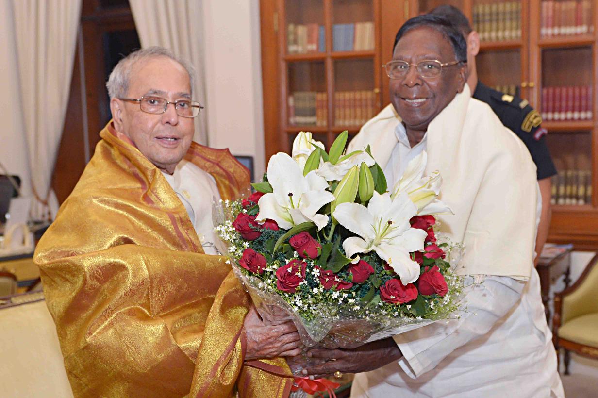 | Caption: | The President of India, Shri Pranab Mukherjee meeting with Shri V. Narayanasamy, Chief Minister of Puducherry, at Rashtrapati Bhavan on November 25, 2016. |