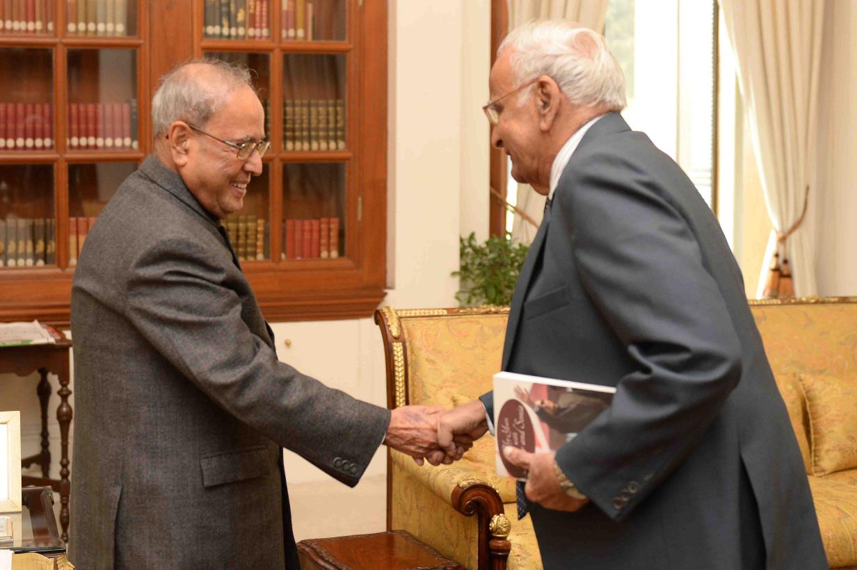 | Caption: | The President of India, Shri Pranab Mukherjee meeting with Shri R.D. Pradhan, former Governor of Arunachal Pradesh, at Rashtrapati Bhavan on November 29, 2016. |