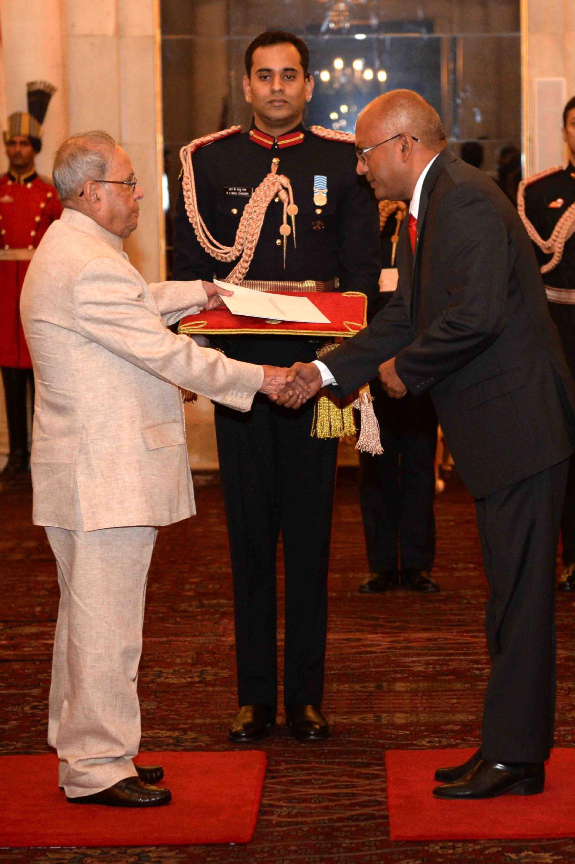 | Caption: | The High Commissioner-designate of Trinidad and Tobago, H.E. Mr. Dave Chandalal Persad presenting his credentials to the President of India, Shri Pranab Mukherjee, at Rashtrapati Bhavan on November 30, 2016. |