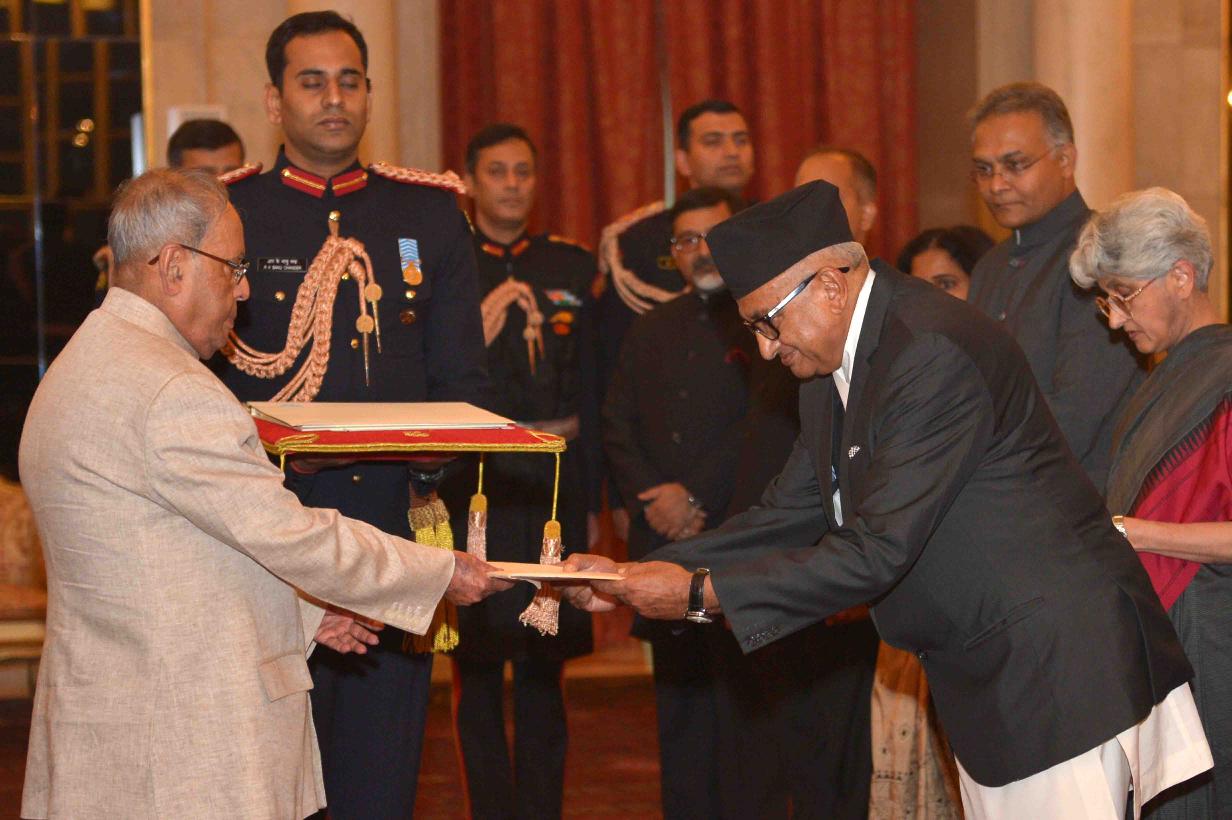 | Caption: | The Ambassador-designate of Nepal, H.E. Mr. Deep Kumar Upadhyay presenting his credentials to the President of India, Shri Pranab Mukherjee, at Rashtrapati Bhavan on November 30, 2016. |