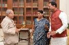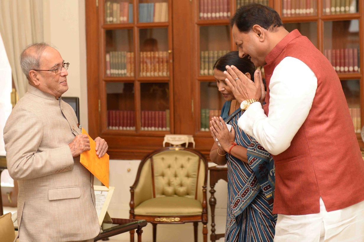 | Caption: | The President of India, Shri Pranab Mukherjee meeting with Smt. Krishna Raj, Minister of State for Women & Child Development and Shri Chhedi Paswan, MP (LS), at Rashtrapati Bhavan on November 30, 2016. |