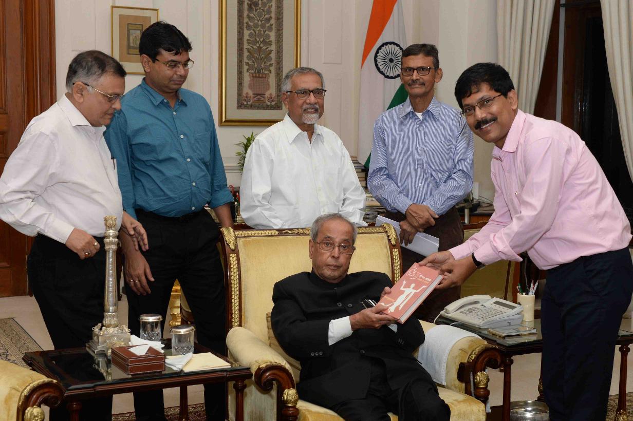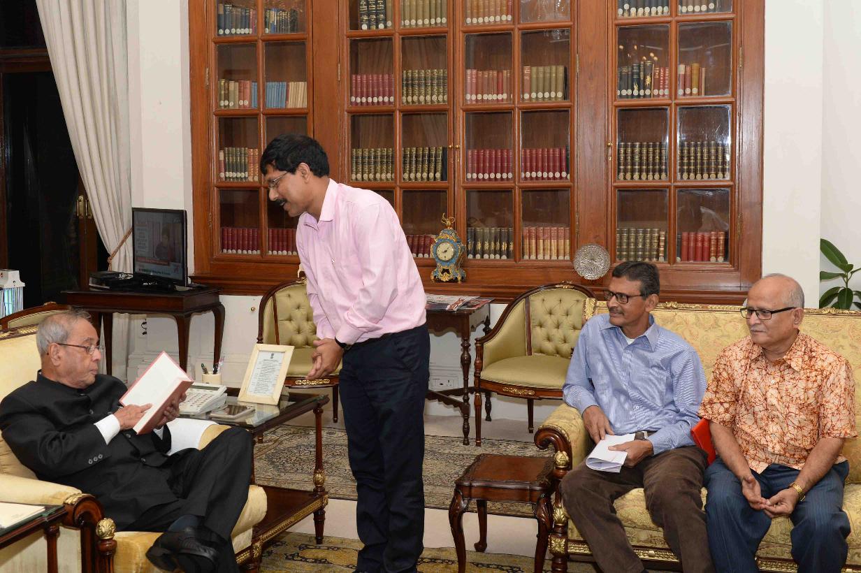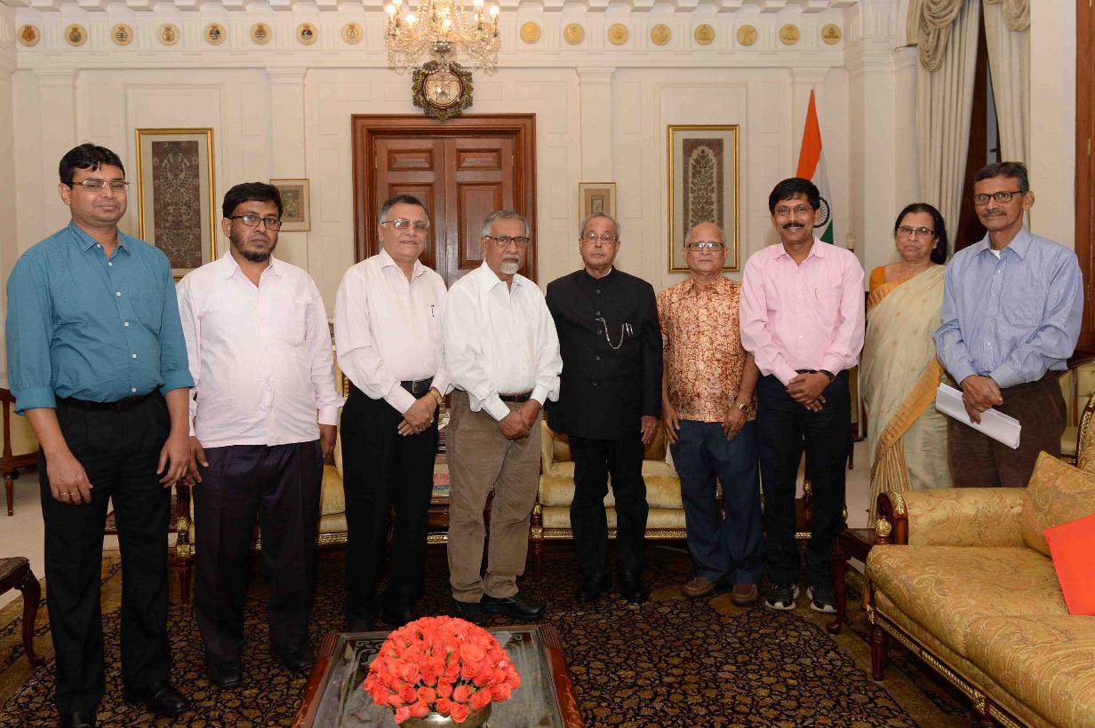 | Caption: | The President of India, Shri Pranab Mukherjee meeting with Shri Ratan Kumar Nandi, Secretary alongwith the members of Monetary Committee of Bangiya Sahitya Parishad, Kolkata, at Rashtrapati Bhavan on October 26, 2016. |