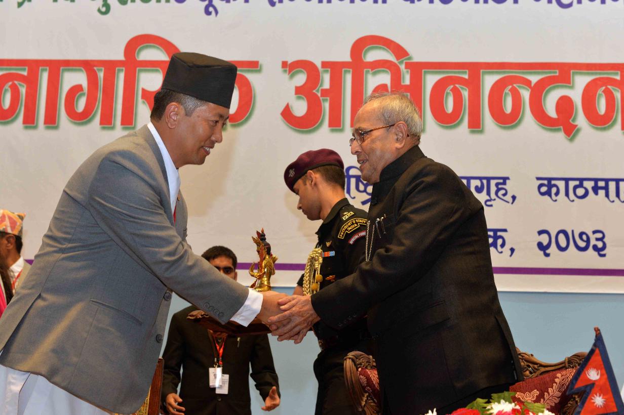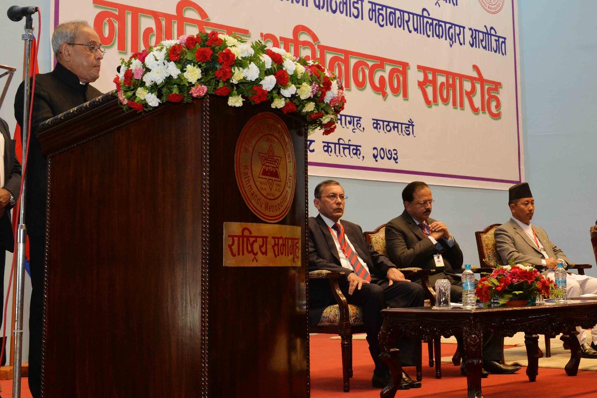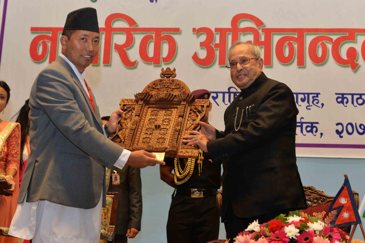 | Caption: | President of India, Shri Pranab Mukherjee attending the Civic Reception, hosted in his honour, at Rashtriya Sabha Griha, Kathmandu, in Nepal on November 03, 2016. |