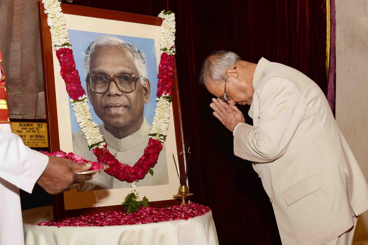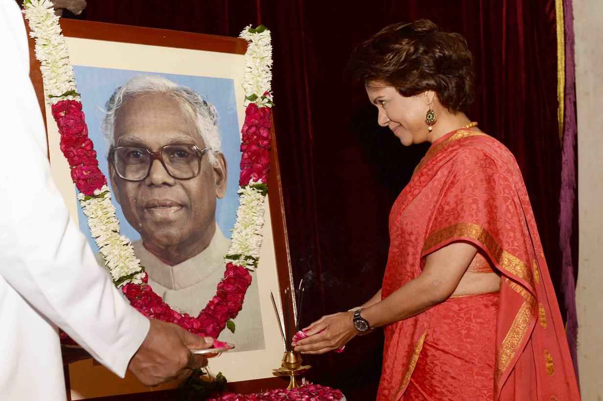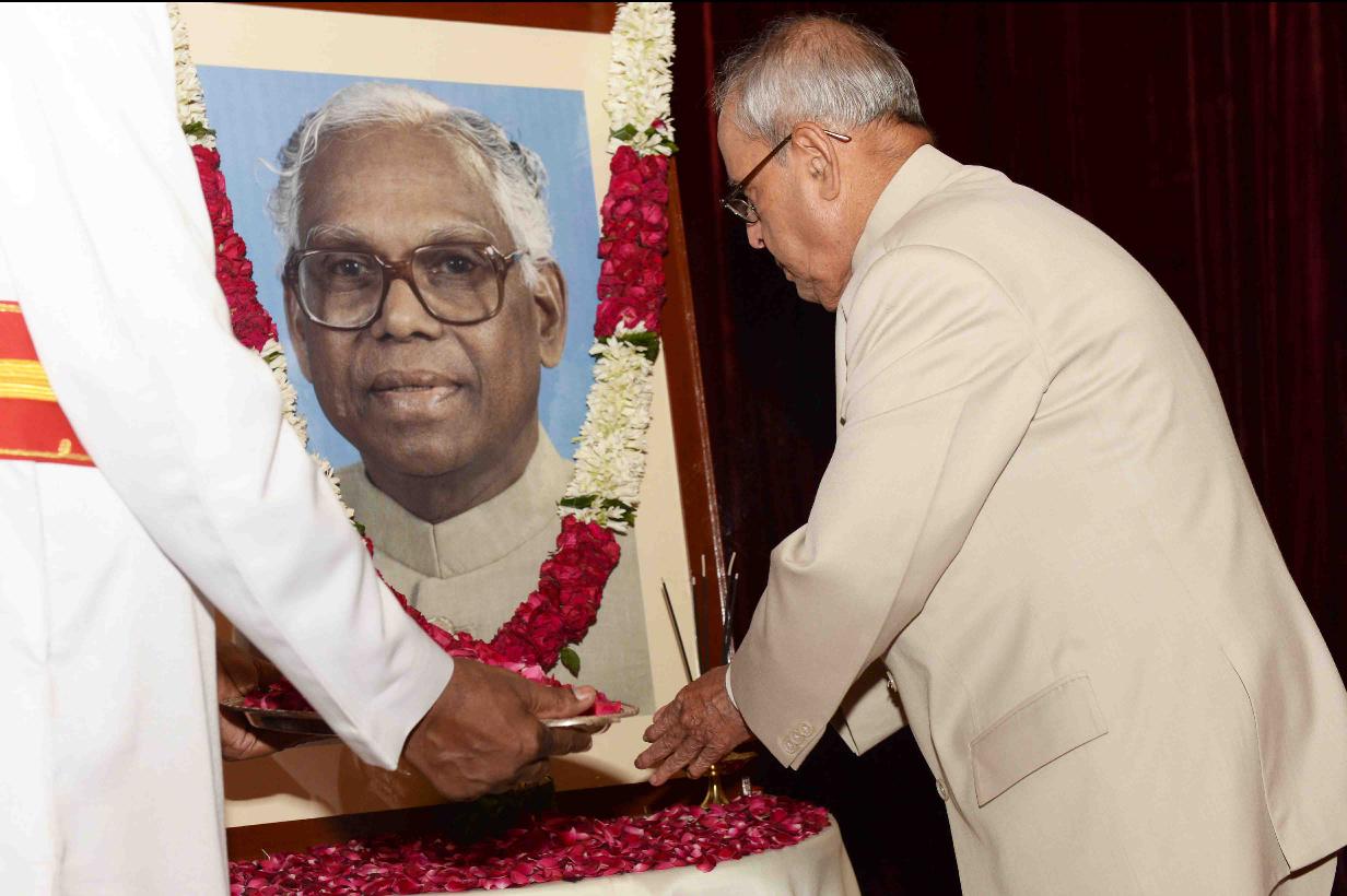 | Caption: | The President of India, Shri Pranab Mukherjee paying floral tributes to the Former President of India, Shri K.R. Narayanan on the occasion of his Birth Anniversary, at Rashtrapati Bhavan on October 27, 2016. Family members of Shri K.R. Narayanan also participated the ceremony. |