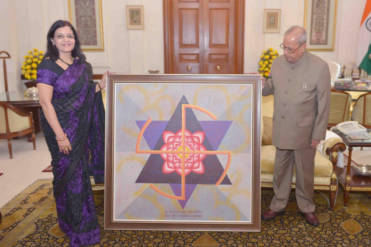 | Caption: | The President of India, Shri Pranab Mukherjee meeting with Smt. Pratiksha Apurv, Artist, at Rashtrapati Bhavan on November 21, 2016. |