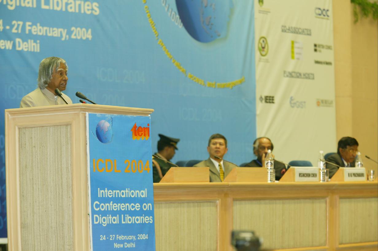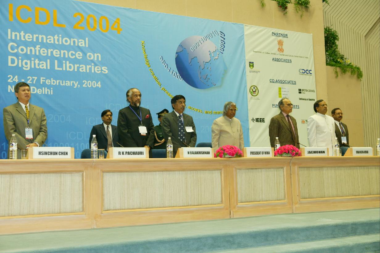 | Caption: | The President of India, Dr A P J Abdul Kalam inaugurating the International Conference on Digital Libraries at Vigyan Bhavan in New Delhi on Feb 24, 2004 |