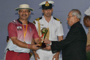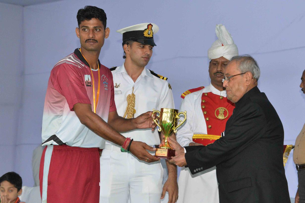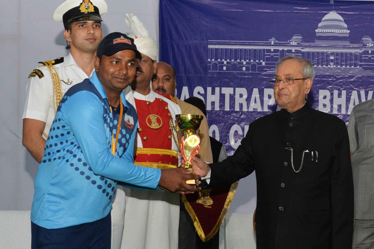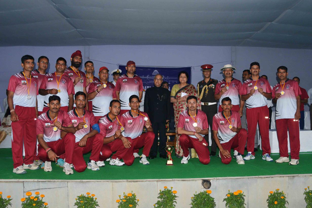 | Caption: | The President of India, Shri Pranab Mukherjee giving away the Championship Trophy of the RBL T20 tournament to the captain of the wining team Dr. Thomas Mathew and prizes to the participants of the Rashtrapati Bhavan League T-20 Cricket Tournament-2016, at Dr. Rajendra Prasad Sarvodaya Vidyalaya Sports Ground, President's Estate on November 13, 2016. |