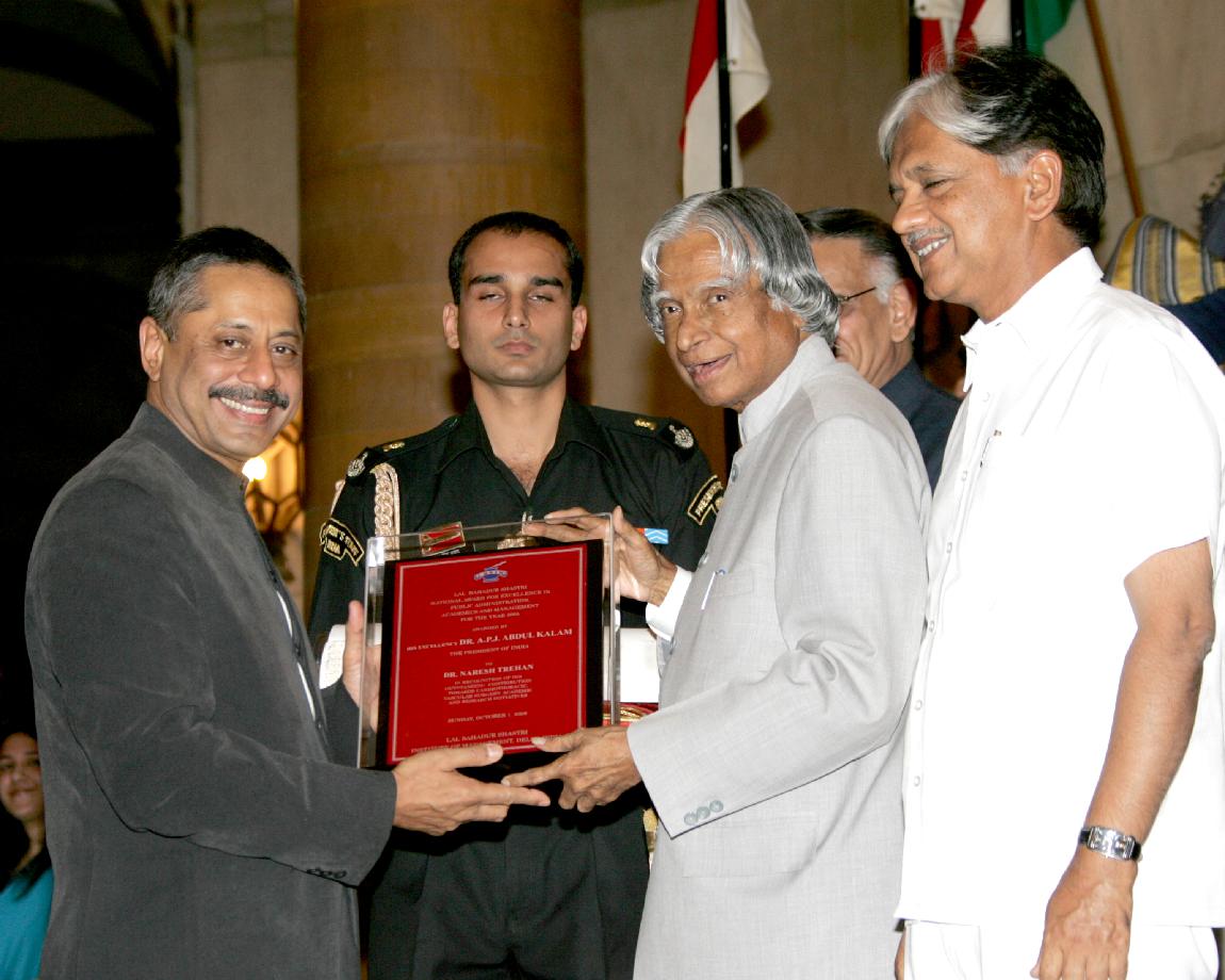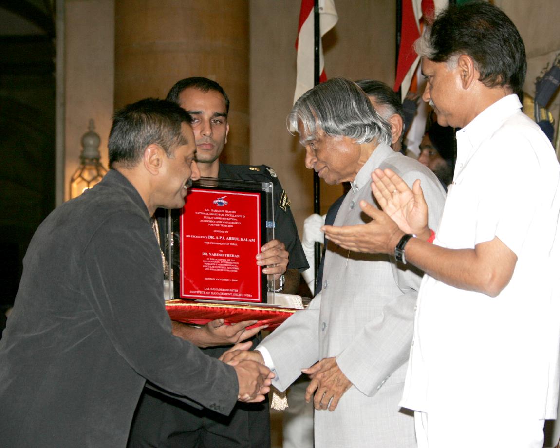 | Caption: | The President of India, Dr A P J Abdul Kalam presenting the Lal Bahadur Shastri National Award for Excellence in Public Administration, Academics & Management to Dr Naresh Trehan at Durbar Hall of Rashtrapati Bhavan in New Delhi on Oct 01, 2006 |