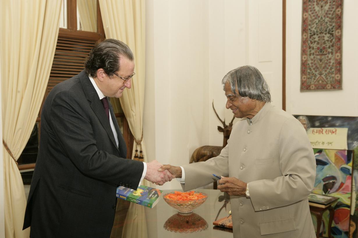 | Caption: | The President of India, Dr A P J Abdul Kalam interacting with Mr Michael Tilmant from ING Group at Rashtrapati Bhavan in New Delhi on Oct 06, 2006 |