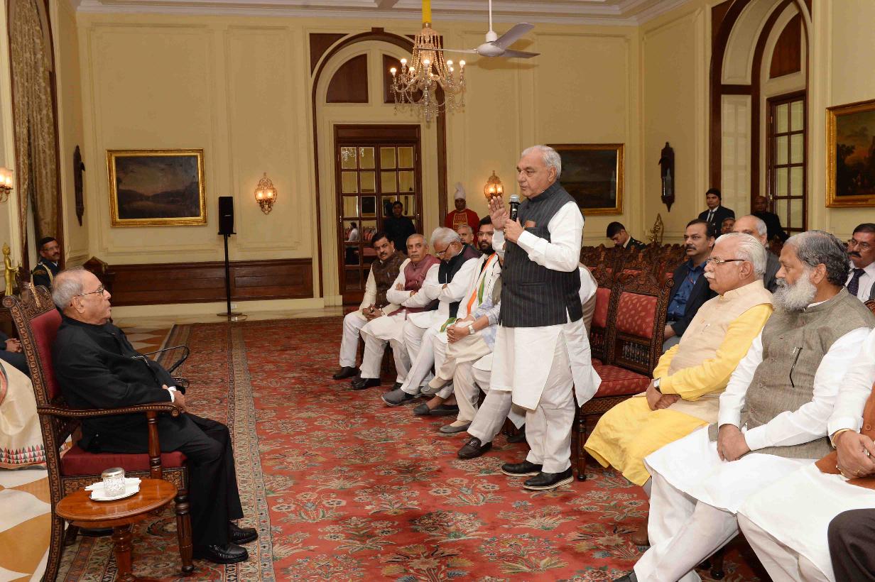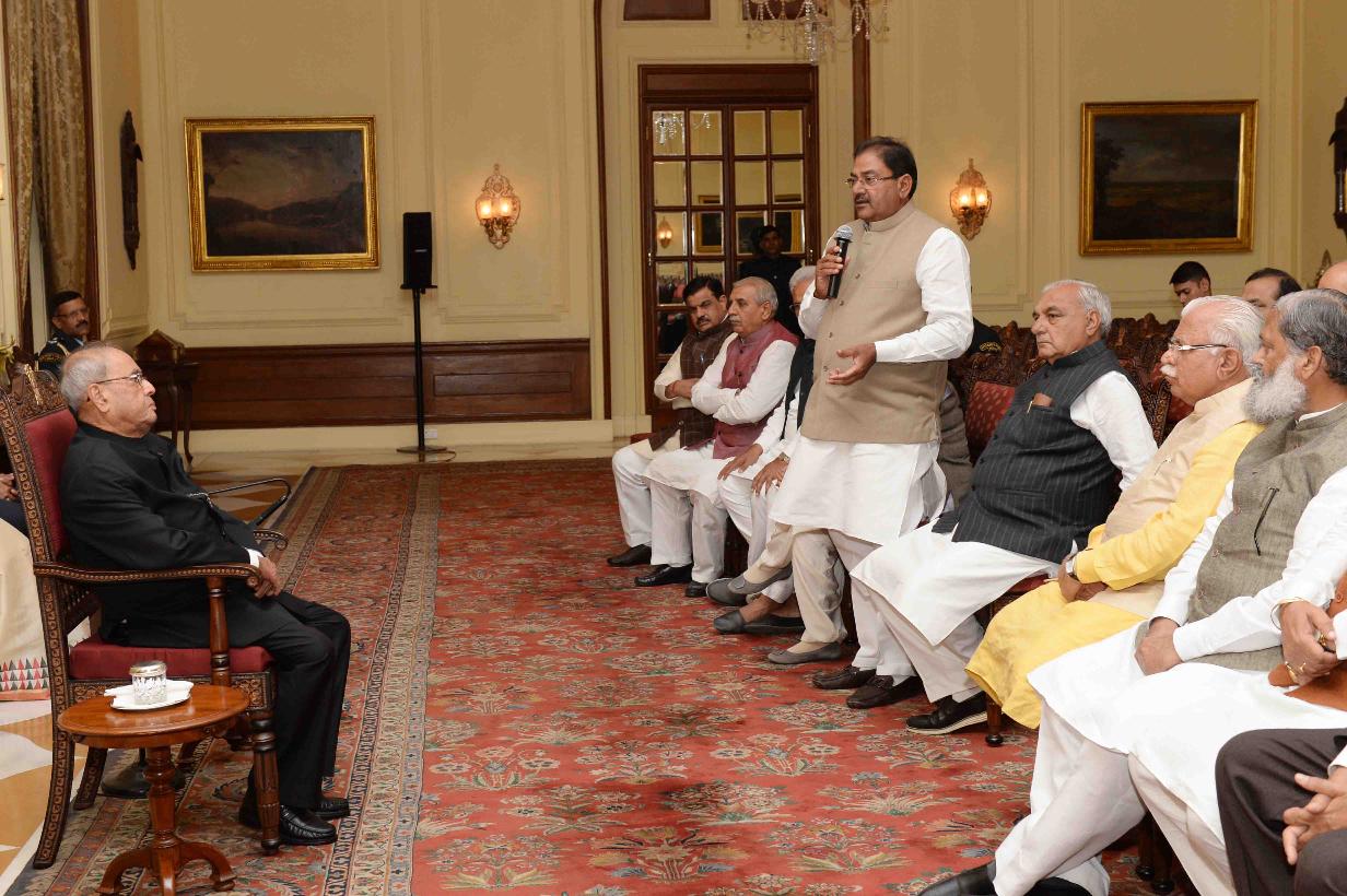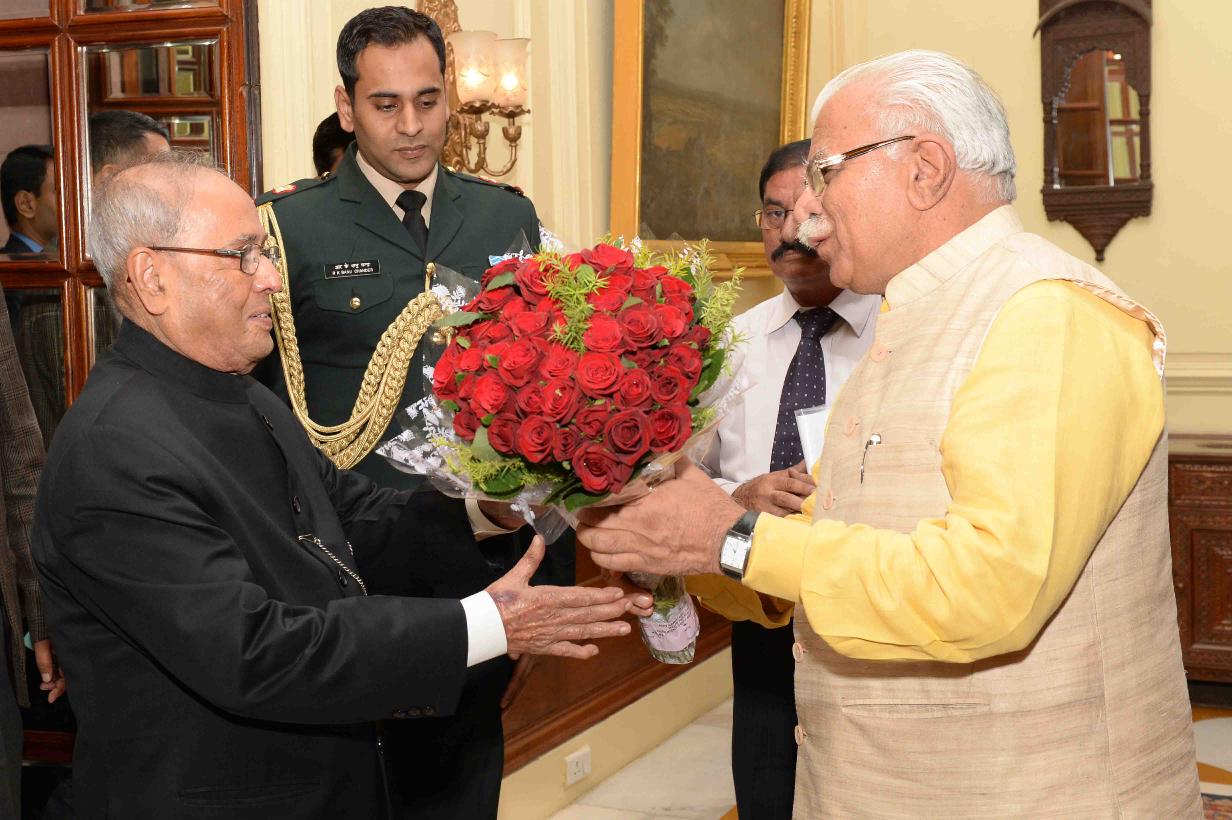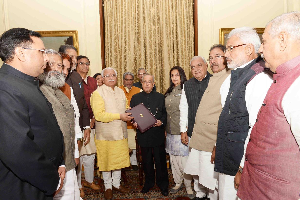 | Caption: | The President of India, Shri Pranab Mukherjee meeting with an all political parties delegation led by Shri Manohar Lal, Chief Minister of Haryana, at Rashtrapati Bhavan on November 28, 2016. |