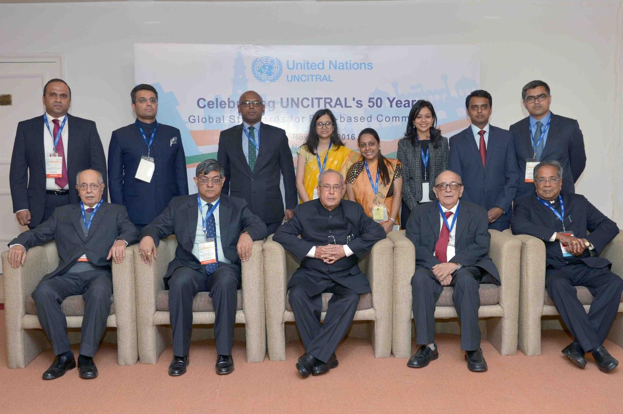 | Caption: | The President of India, Shri Pranab Mukherjee addressing at the celebrations of 50 years of Establishment of the United Nations Commission on International Trade Law (UNCITRAL), at Vigyan Bhavan, in New Delhi on November 28, 2016. |