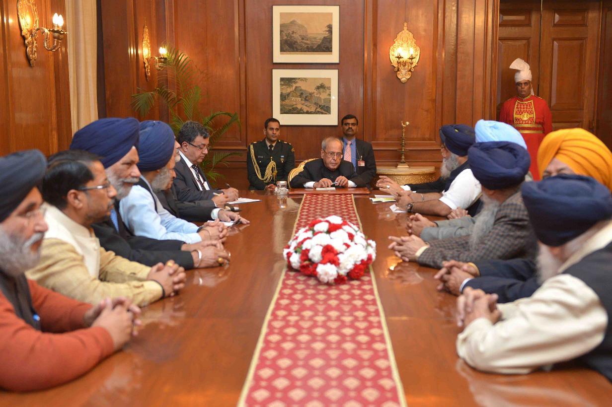 | Caption: | The President of India, Shri Pranab Mukherjee meeting with Shri Prakash Singh Badal, Chief Minister of Punjab along with the Council of Ministers and others, at Rashtrapati Bhavan on November 28, 2016. |