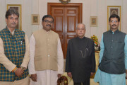 | Caption: | The President of India, Shri Pranab Mukherjee meeting with Shri Bipradas Chakraborty, Shri Sujit Sarkhel and Shri Kumaresh Ghosh, at Rashtrapati Bhavan on December 07, 2016. |