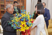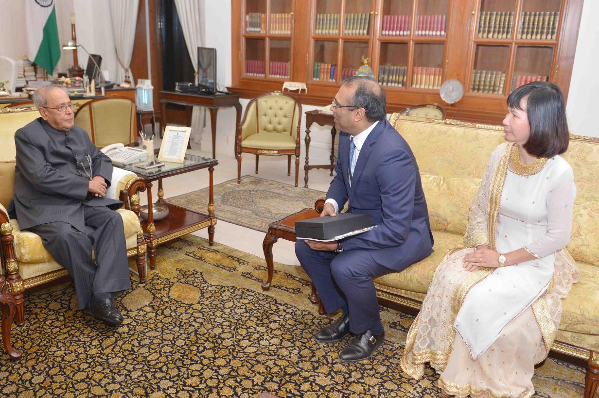 | Caption: | The President of India, Shri Pranab Mukherjee meeting with Shri Satish Pai, Managing Director, Handalco Industries Limited, Aditya Birla Group and Smt. Vanvimon Pai, at Rashtrapati Bhavan on December 05, 2016. |