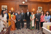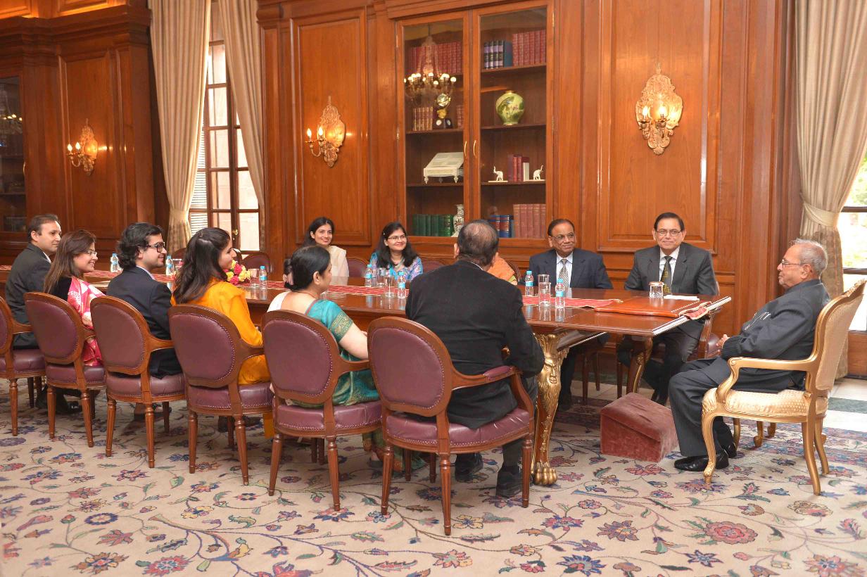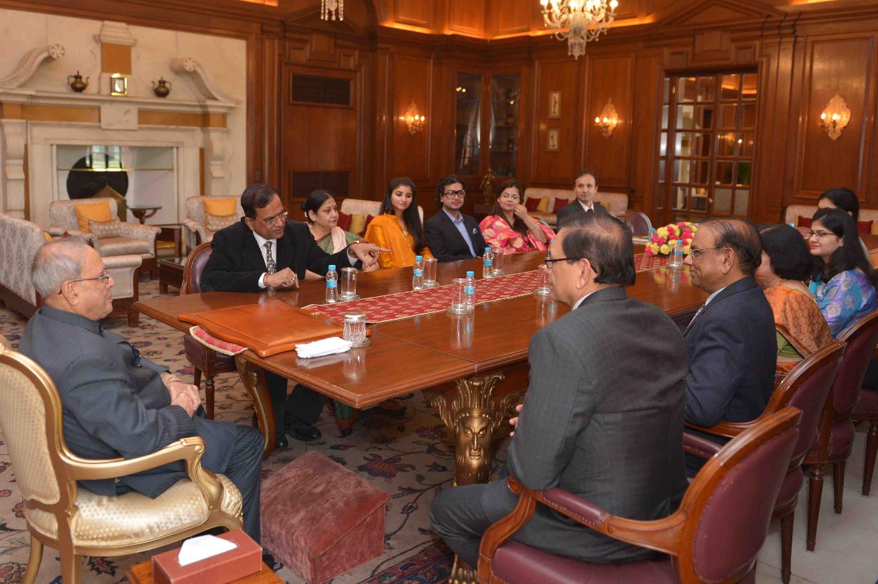 | Caption: | The President of India, Shri Pranab Mukherjee meeting with Shri Satish Chandra Mishra, MP (RS) alongwith his family members, at Rashtrapati Bhavan on December 05, 2016. |