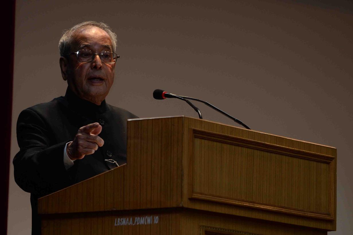 | Caption: | The President of India, Shri Pranab Mukherjee attending the valedictory function of the 91st Foundation Course for All India Services and distributing awards to the Officer Trainees, at Lal Bahadur Shastri National Academy of Administration, Mussoorie, in Uttarakhand on December 09, 2016. |