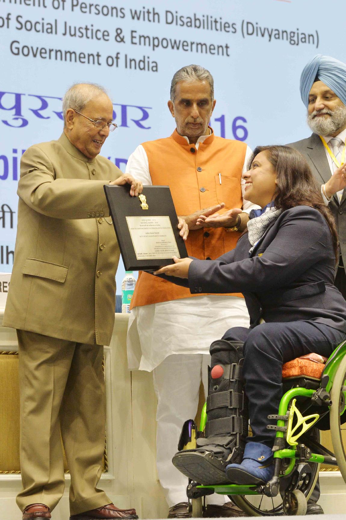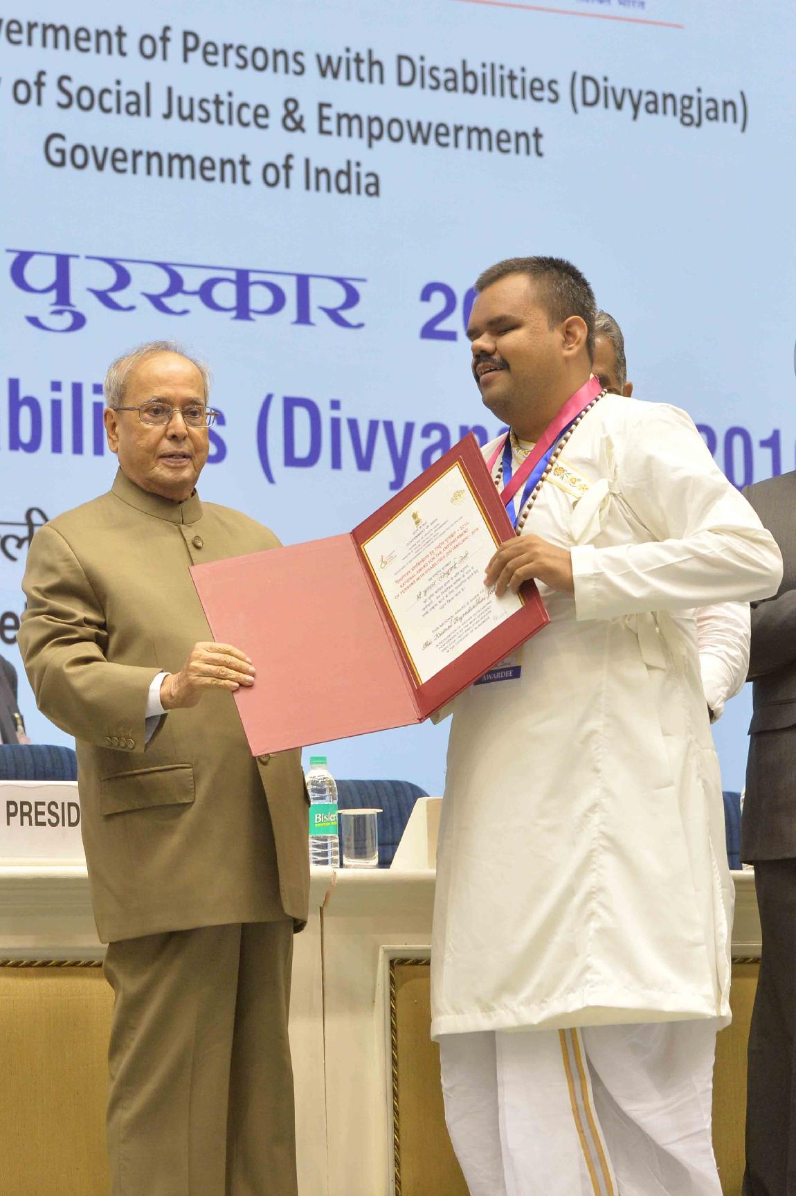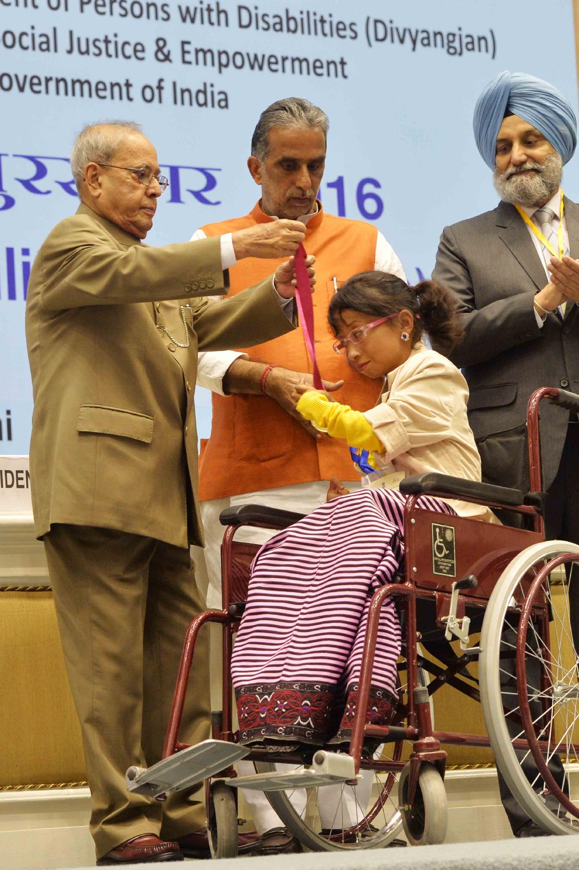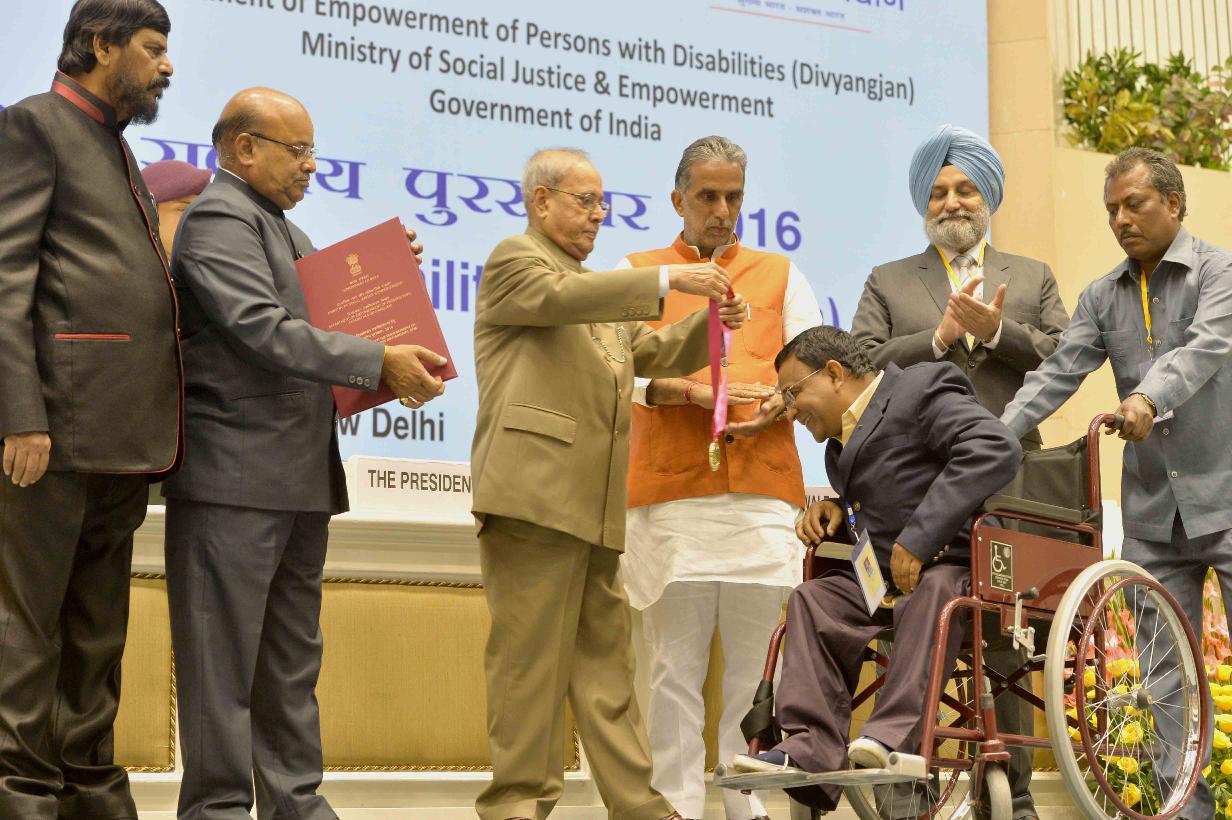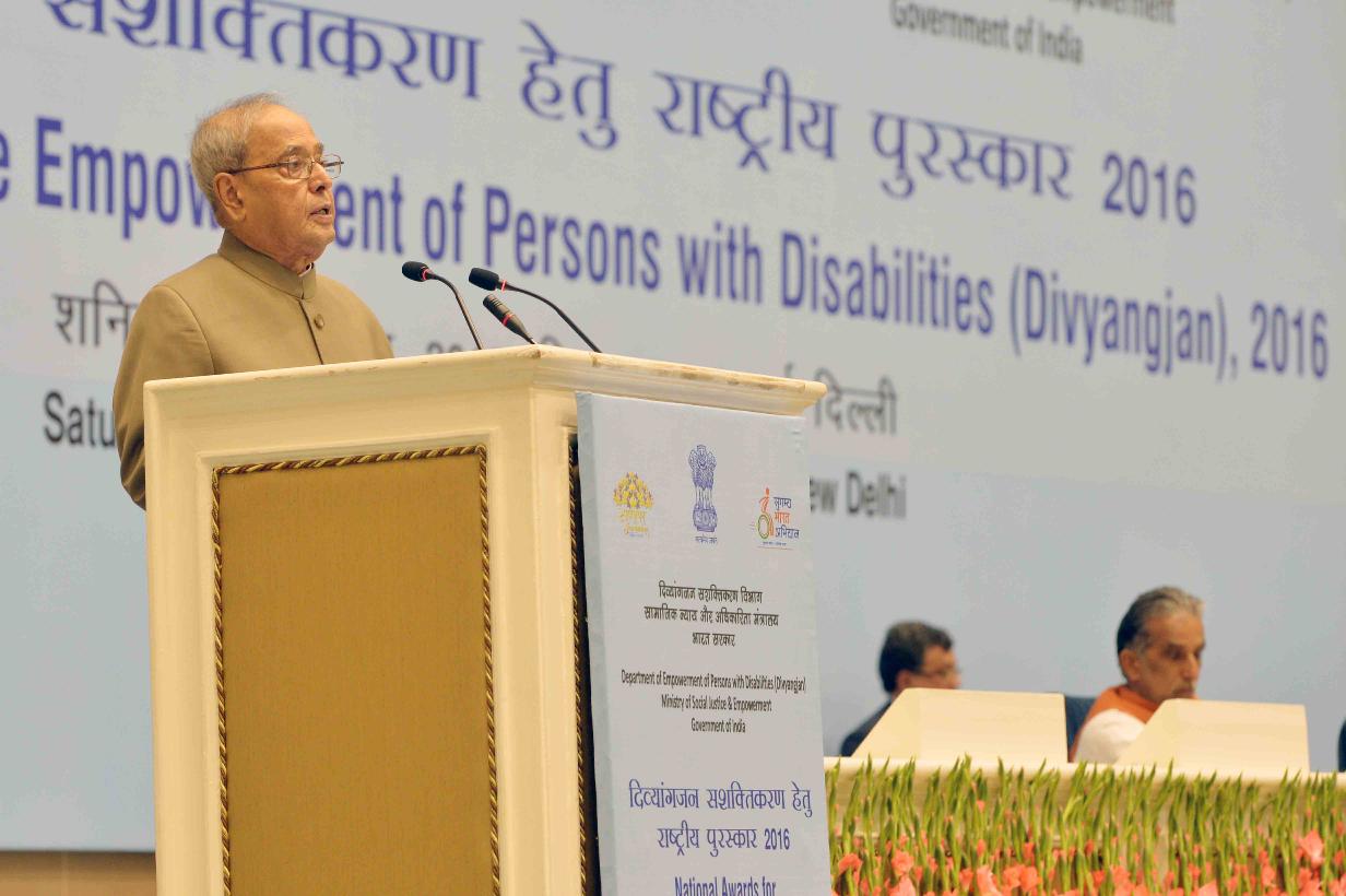 | Caption: | The President of India, Shri Pranab Mukherjee presenting the National Awards for the Empowerment of Persons with Disabilities (Divyangjan), on the occasion of International Day of Disabled Persons, in New Delhi on December 03, 2016. |