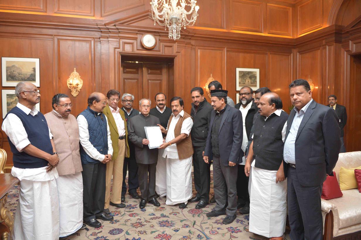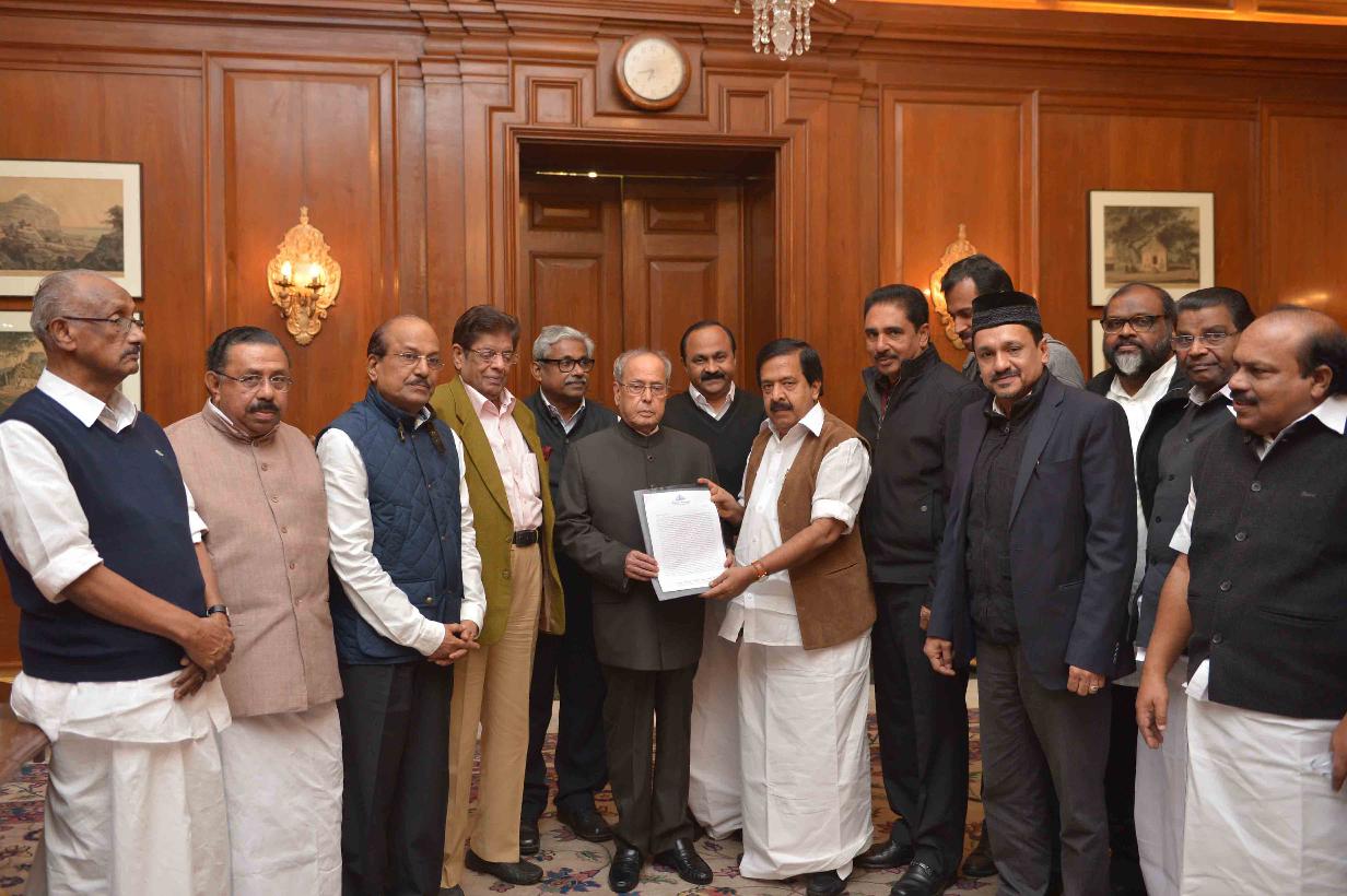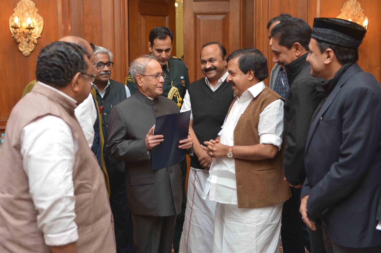 | Caption: | The President of India, Shri Pranab Mukherjee meeting with a delegation of MPs, MLAs & Leaders from Kerala Led by Shri Ramesh Chennithala, Leader of Opposition, Kerala Legislative Assembly, at Rashtrapati Bhavan on December 13, 2016. |