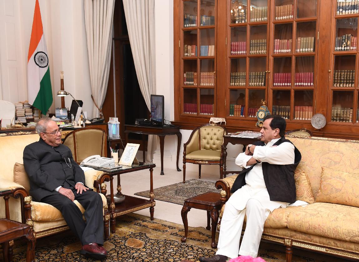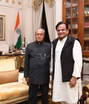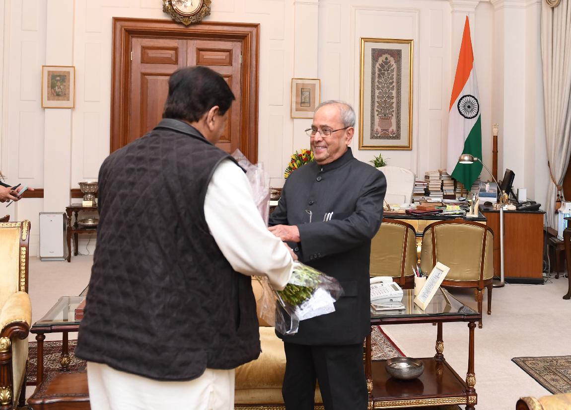 | Caption: | The Member of Parliament, Rajya Sabha, Shri Ahmed Patel greeting the President of India, Shri Pranab Mukherjee on the occasion of his birthday, at Rashtrapati Bhavan on December 11, 2016. |