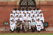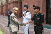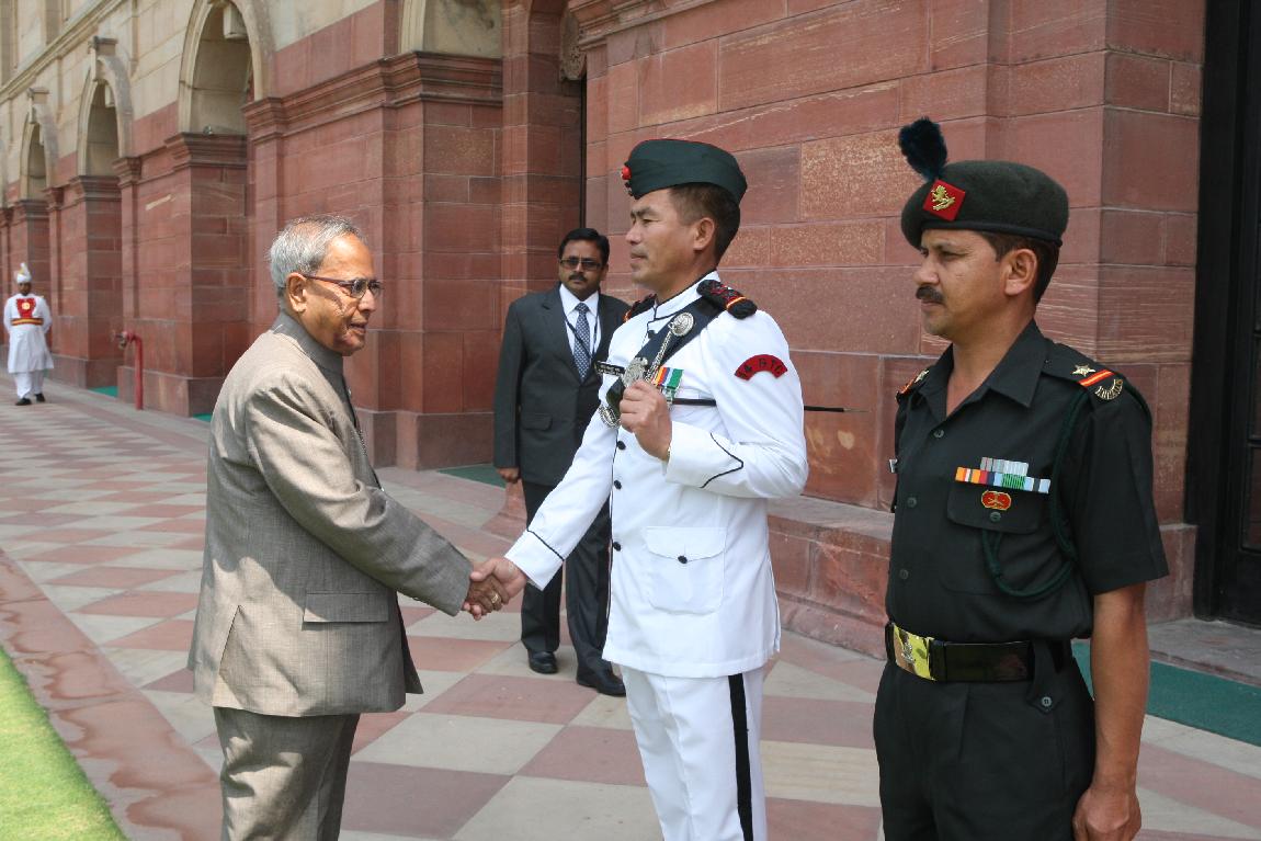 | Caption: | The President of India, Shri Pranab Mukherjee Attending Group Photographs With The Band Personnel of The 14 GTC Military Band on March 30, 2013 |