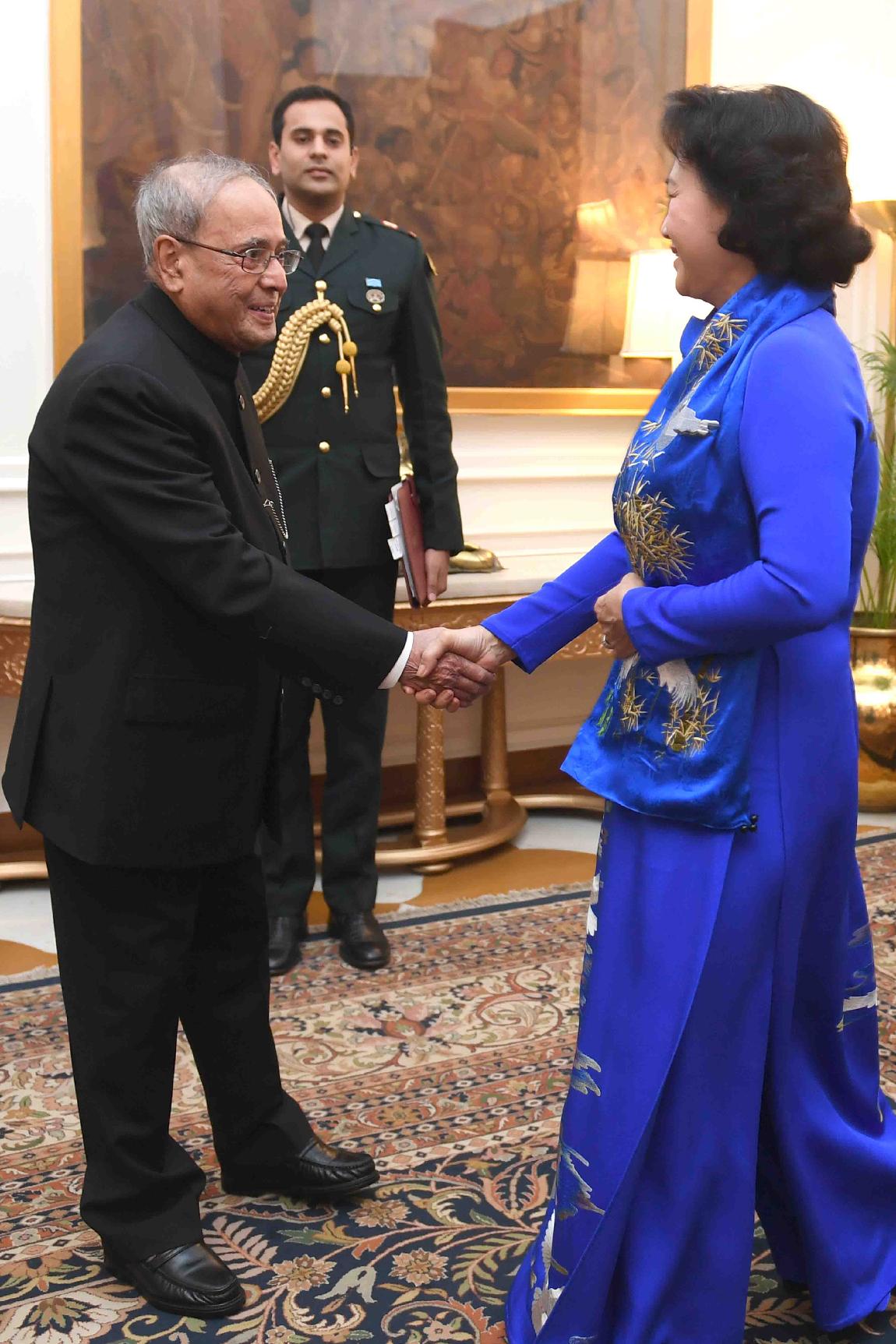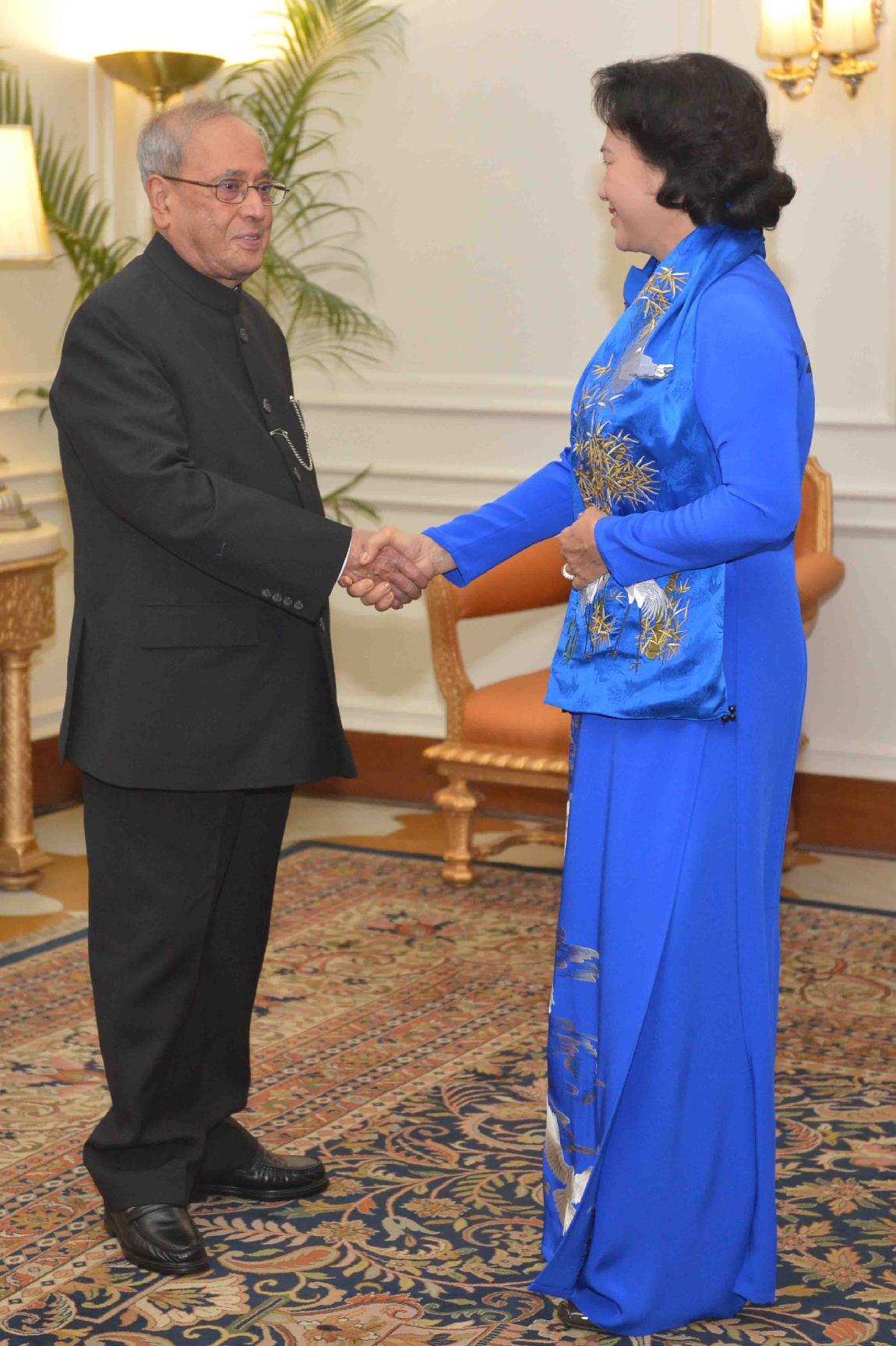 | Caption: | The Chairperson of the National Assembly of Vietnam, H.E. Mrs. Ngyun Thi Kim Ngan calling on the President of India, Shri Pranab Mukherjee, at Rashtrapati Bhavn on December 10, 2016. |