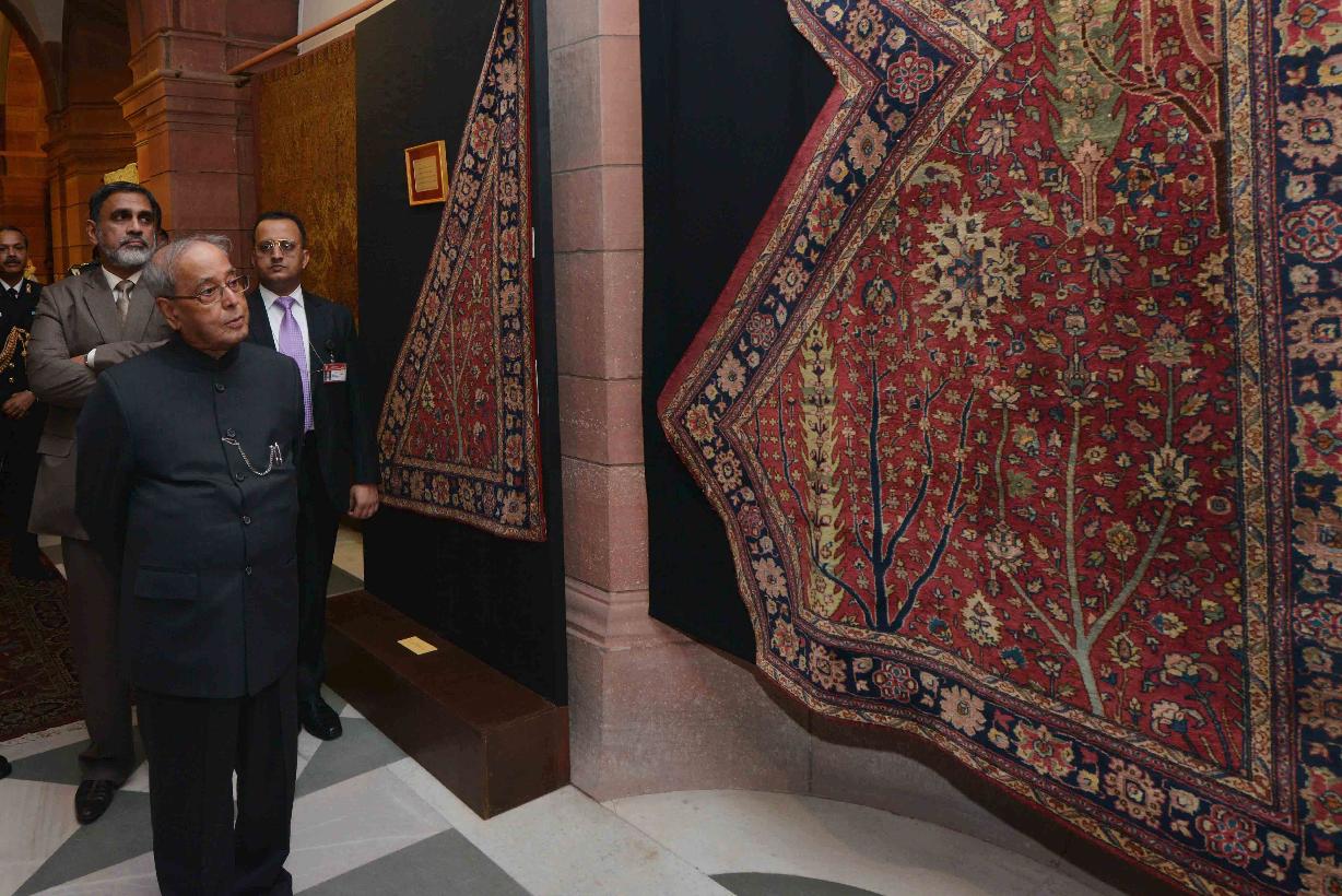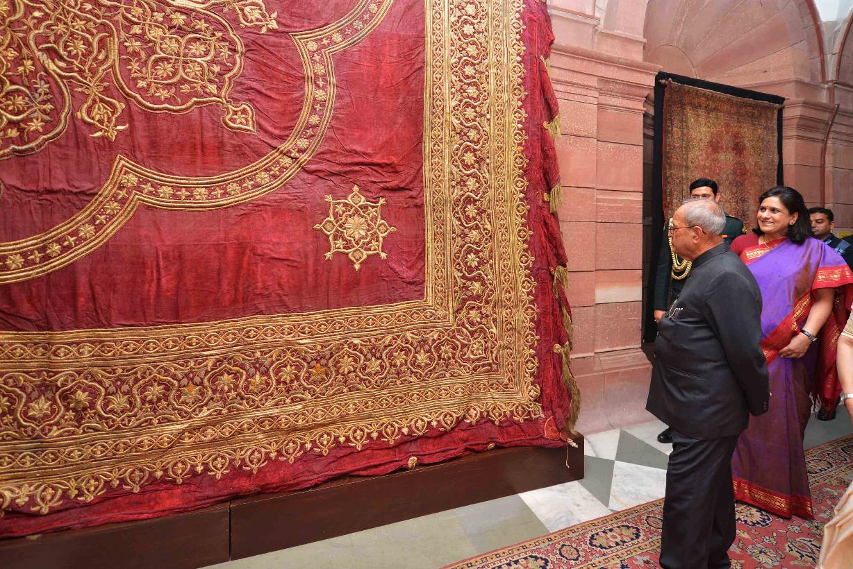 | Caption: | The President of India, Shri Pranab Mukherjee visiting the Permanent Exhibition of Vintage Carpets and Tapestries of Rashtrapati Bhavan, at Rashtrapati Bhavan on December 11, 2016. |