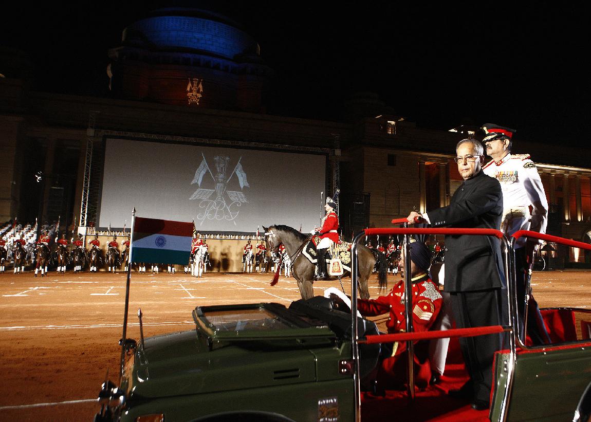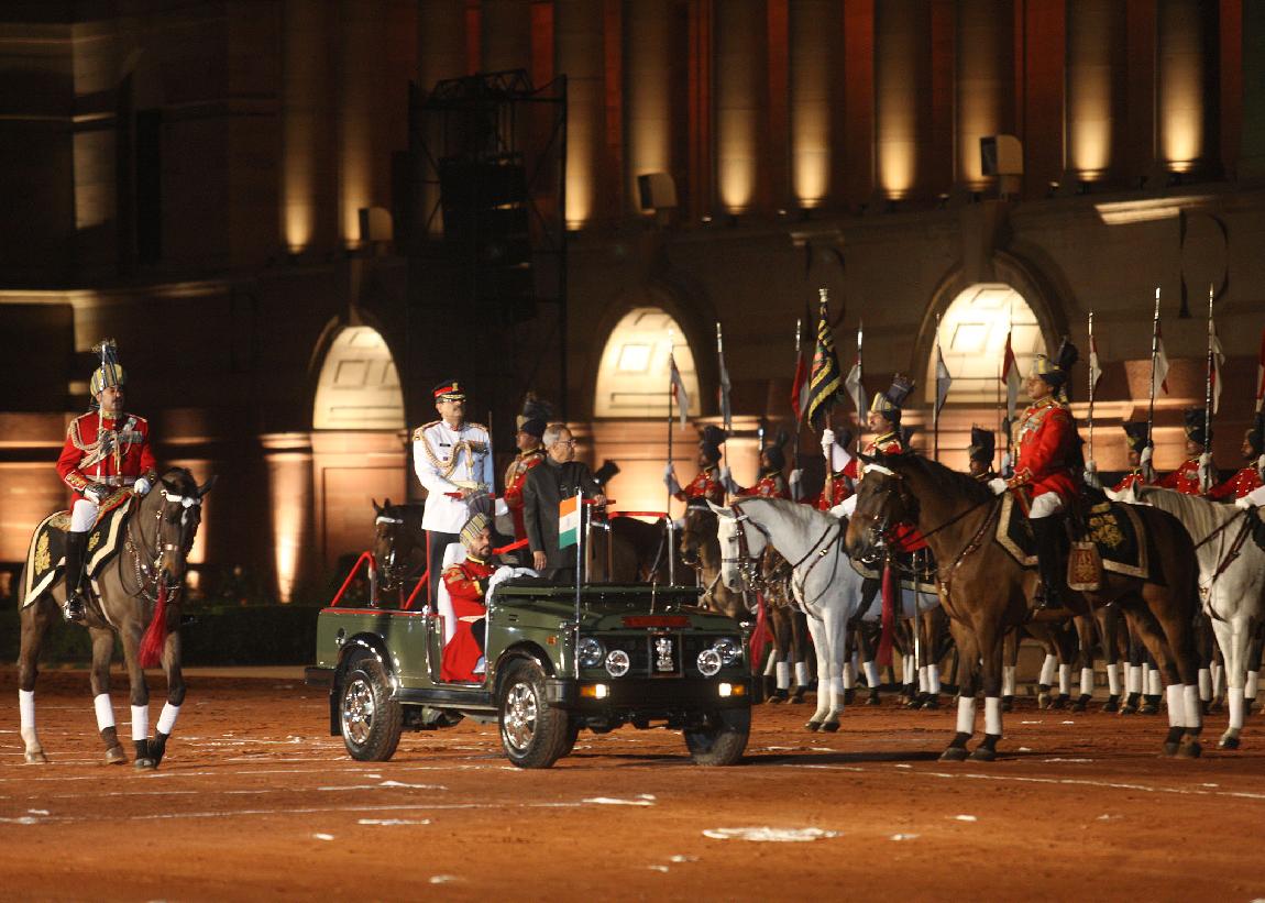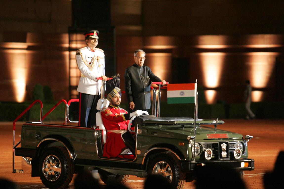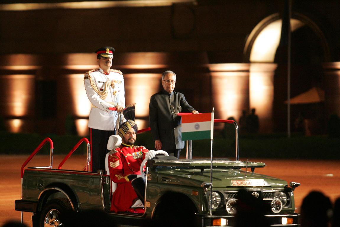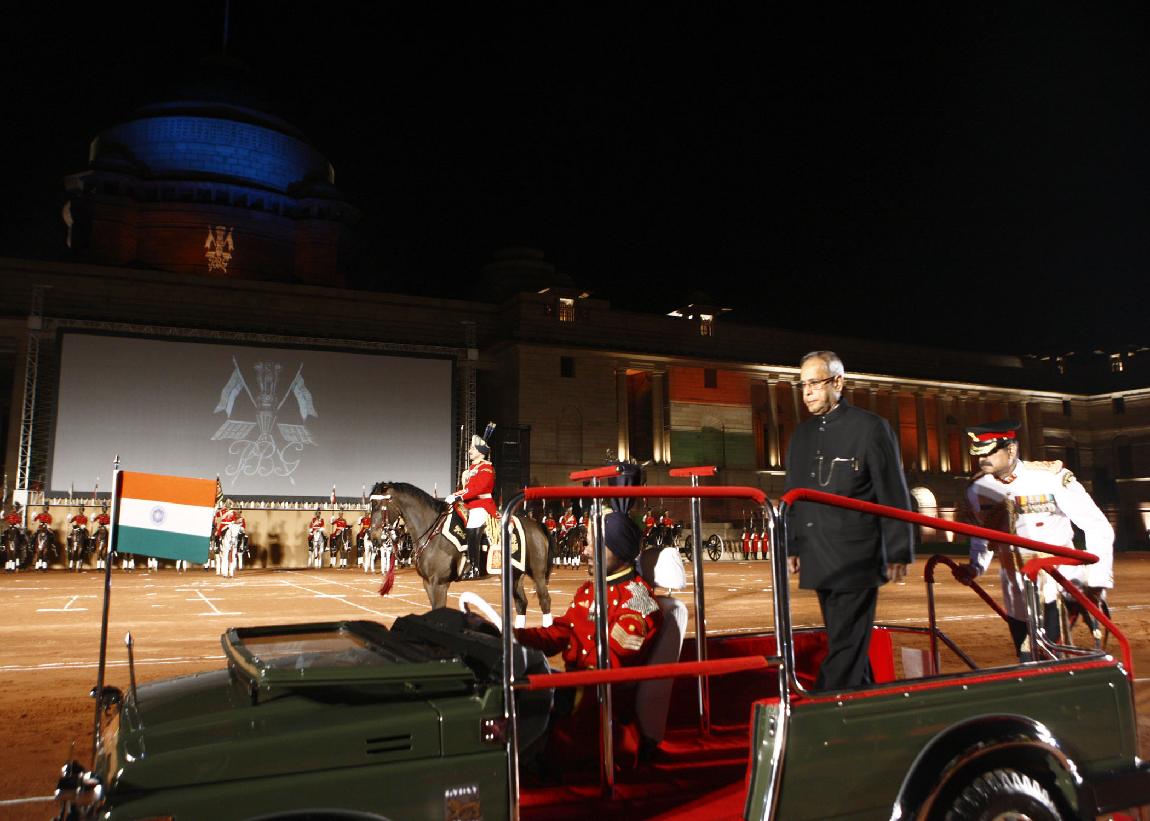 | Caption: | The President of India, Shri Pranab Mukherjee Presenting of Silver Trumpet & Trumpet Banner of President's Bodyguard on March 30, 2013 |