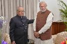 | Caption: | The Prime Minister of India, Shri Narendra Modi greeting the President of India, Shri Pranab Mukherjee on the occasion of his birthday, at Rashtrapati Bhavan on December 11, 2016. |