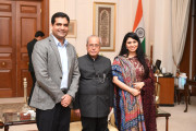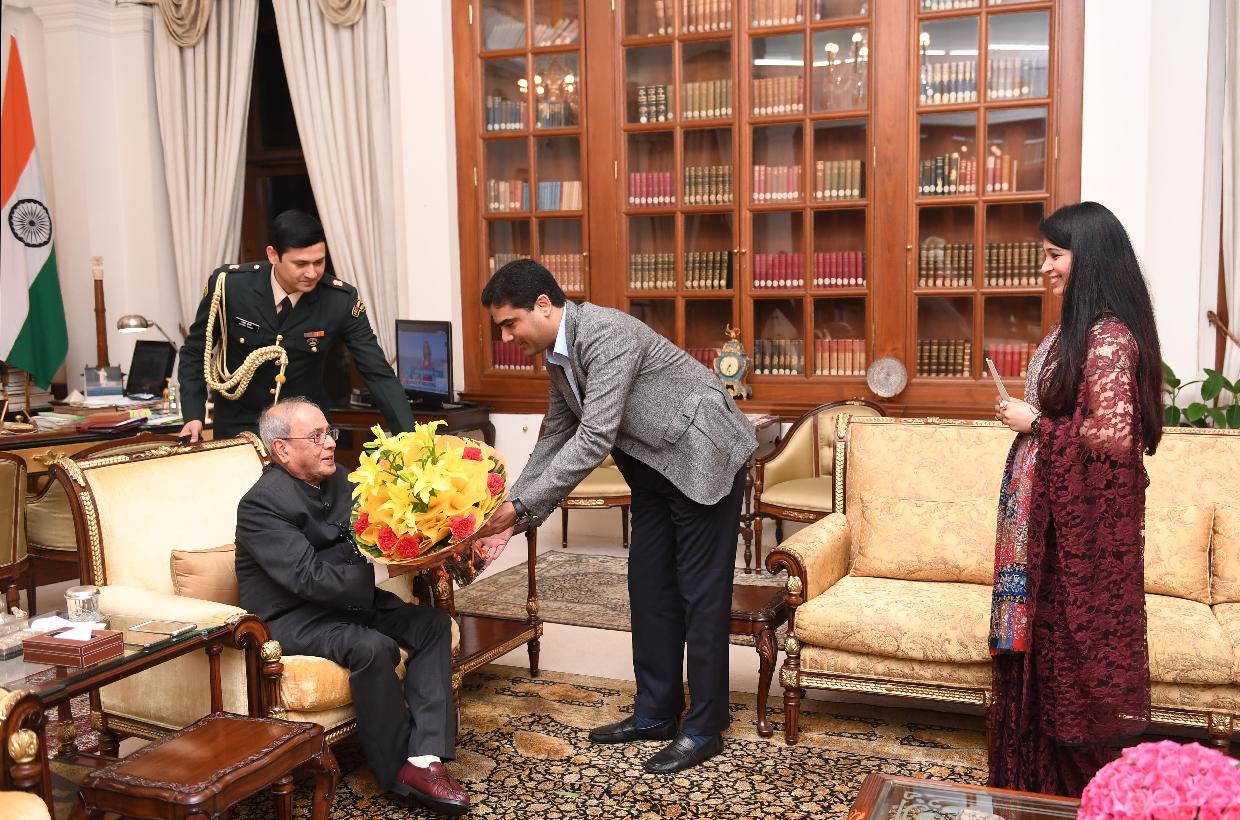 | Caption: | The President of India, Shri Pranab Mukherjee being greeted by Shri Kapish Mehra on the occasion of his birthday, at Rashtrapati Bhavan on December 11, 2016. |