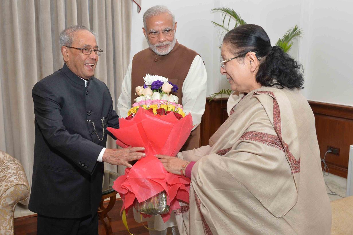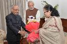 | Caption: | The Speaker of the Lok Sabha, Smt. Sumitra Mahajan greeting the President of India, Shri Pranab Mukherjee on the occasion of his birthday, at Rashtrapati Bhavan on December 11, 2016. |