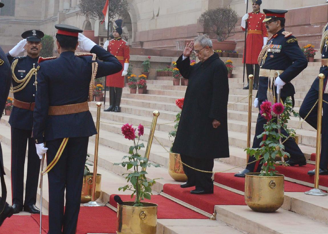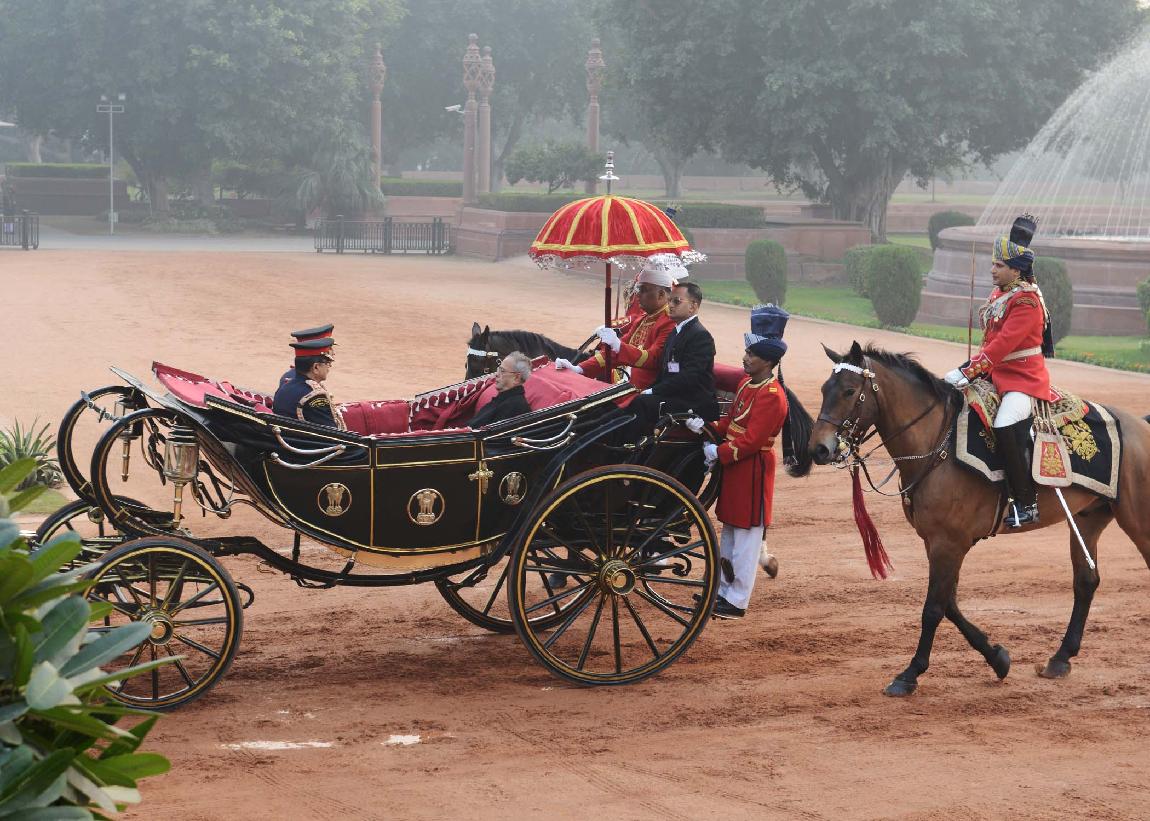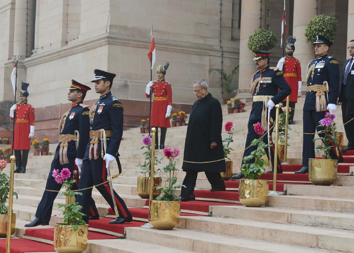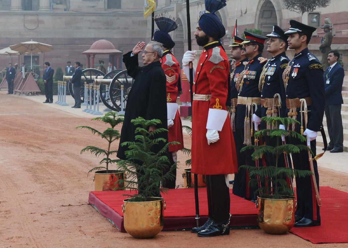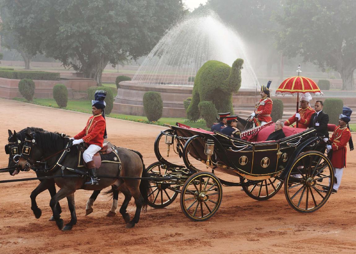 | Caption: | The President of India, Shri Pranab Mukherjee at the Forecourt of Rashtrapati Bhavan before departure for attending the Beating Retreat Function at Vijay Chowk in New Delhi on Jan 29, 2014 |