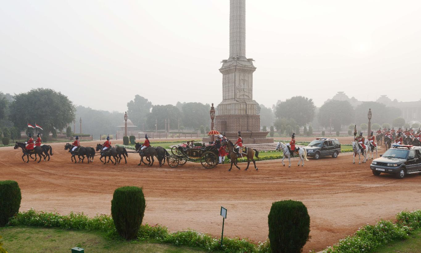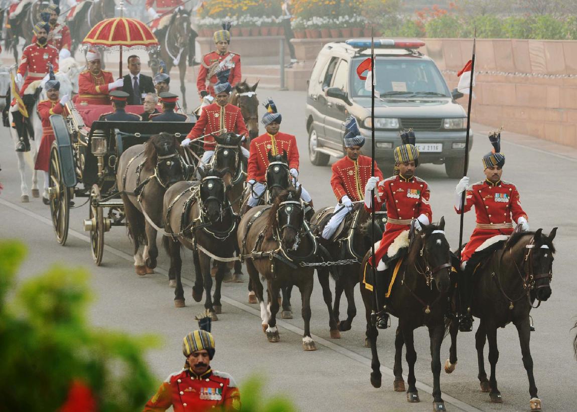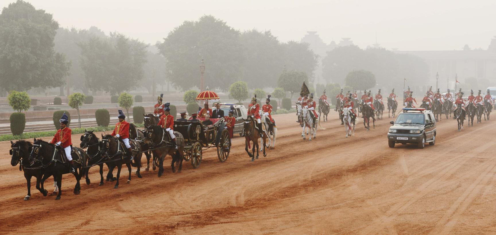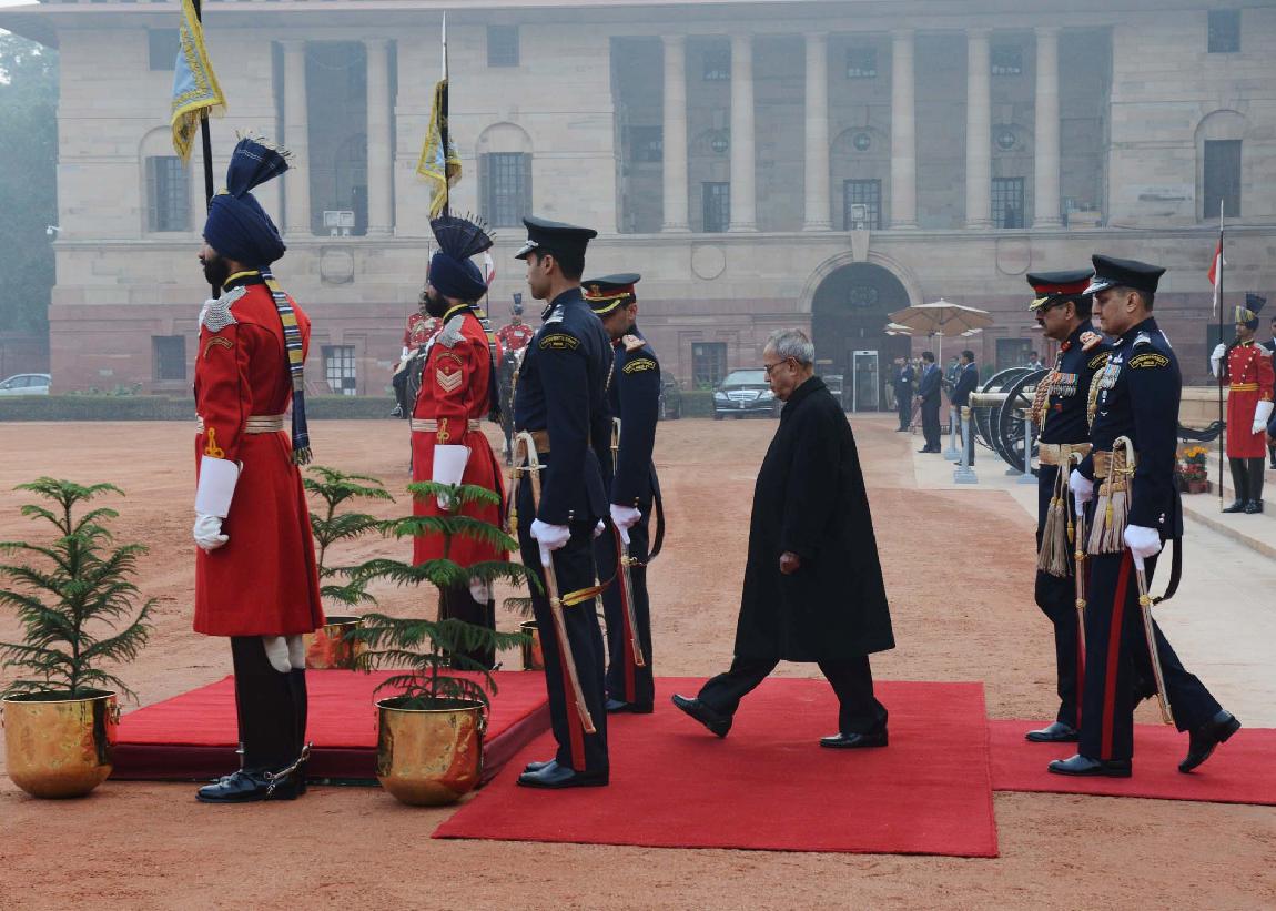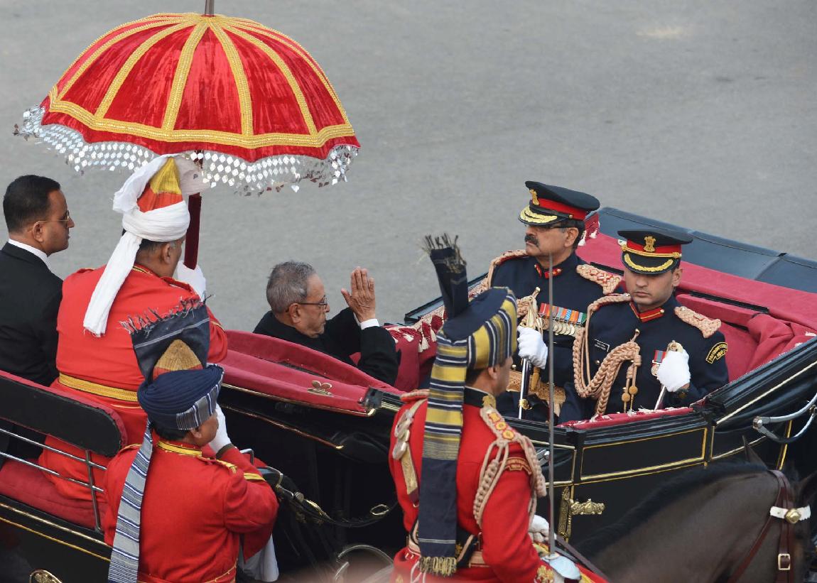 | Caption: | The President of India, Shri Pranab Mukherjee at the Forecourt of Rashtrapati Bhavan before departure for attending the Beating Retreat Function at Vijay Chowk in New Delhi on Jan 29, 2014 |