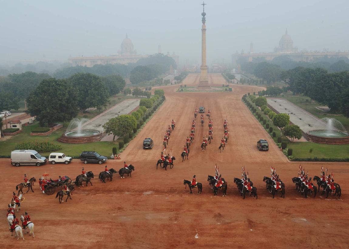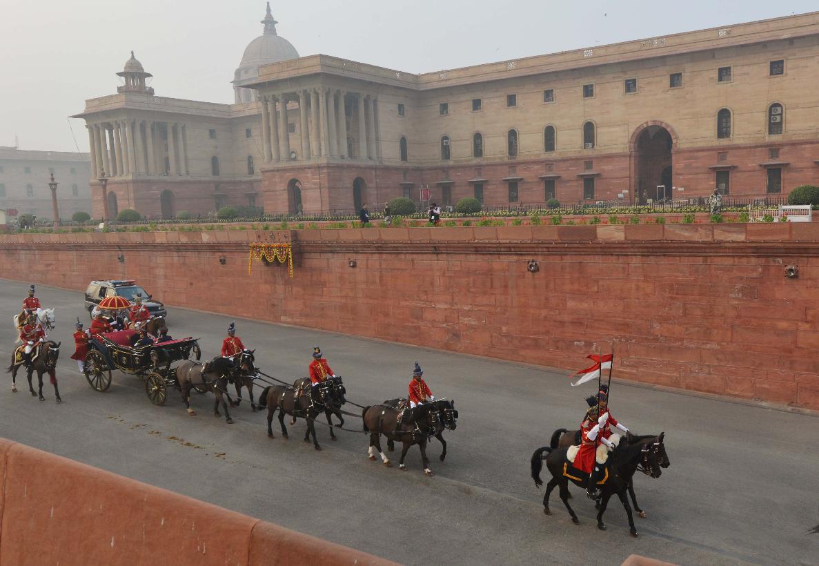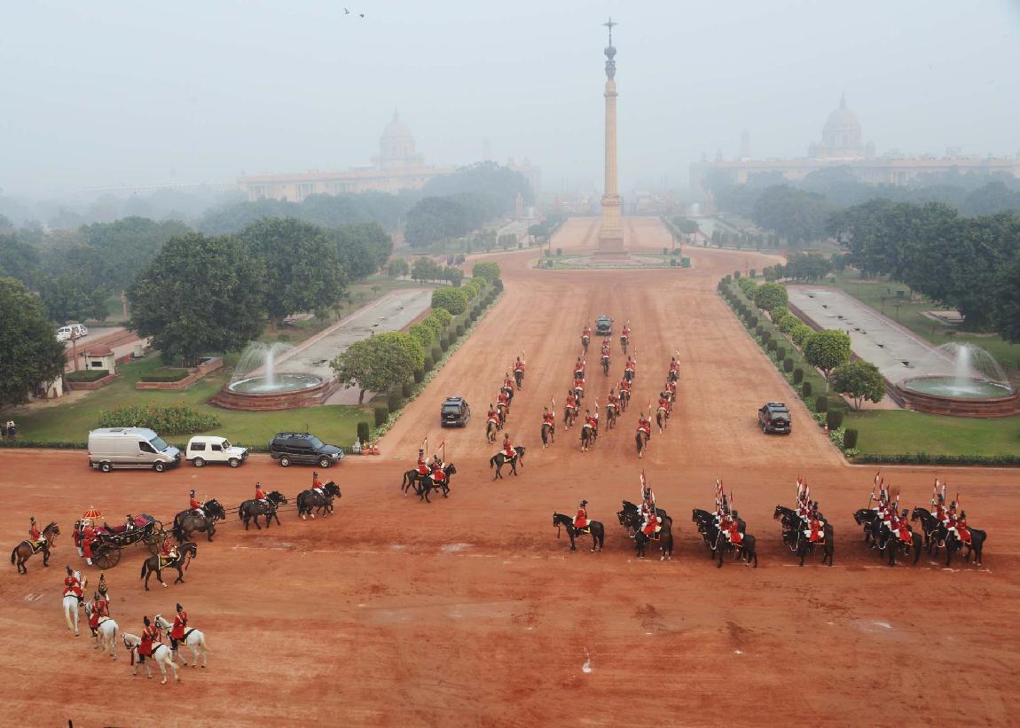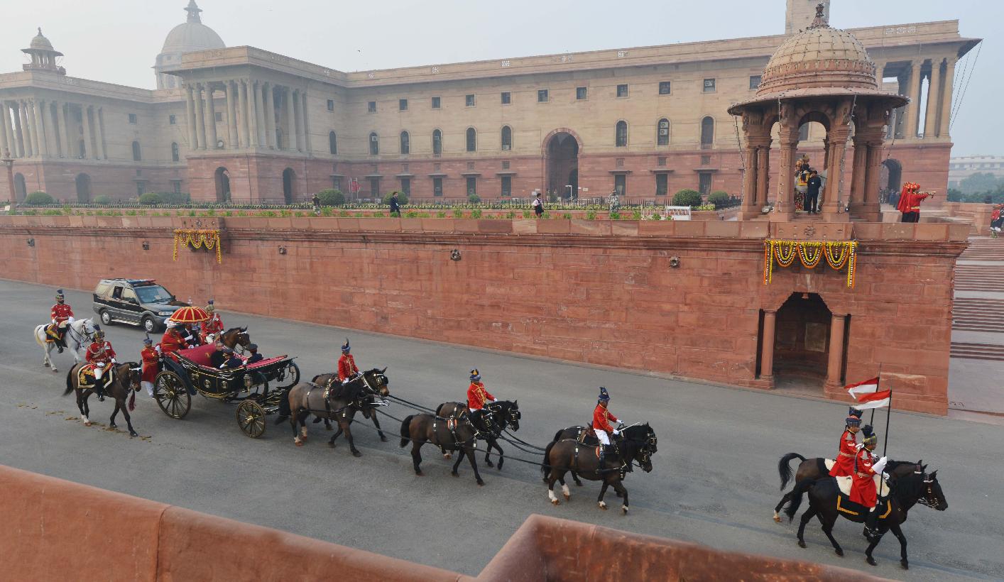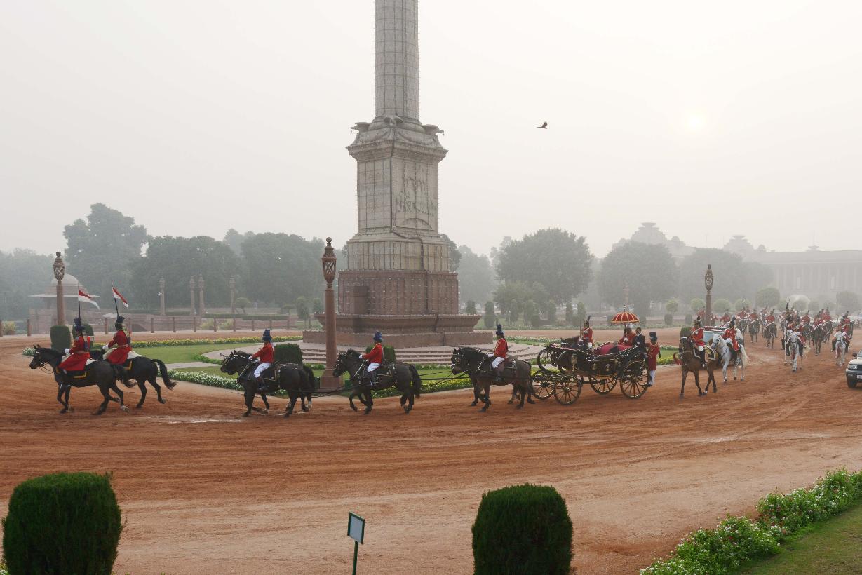 | Caption: | The President of India, Shri Pranab Mukherjee at the Forecourt of Rashtrapati Bhavan before departure for attending the Beating Retreat Function at Vijay Chowk in New Delhi on Jan 29, 2014 |