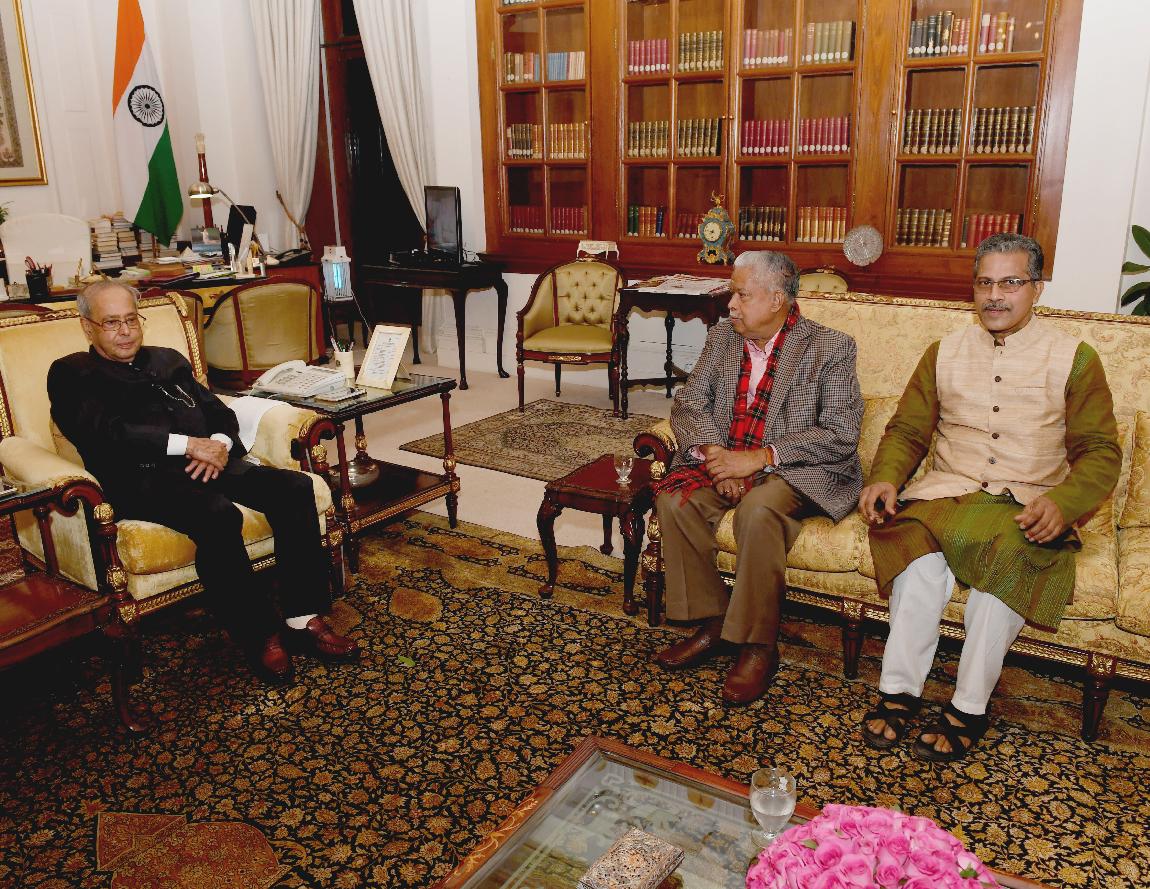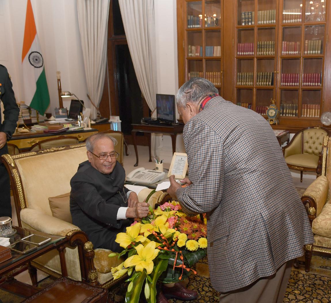 | Caption: | The President of India, Shri Pranab Mukherjee being greeted by Shri V. Balasubramanian on the occasion of his birthday, at Rashtrapati Bhavan on December 11, 2016. |