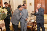 | Caption: | The Lt. Governor of Andaman & Nicobar Islands, Prof. Jagdish Mukhi greeting the President of India, Shri Pranab Mukherjee on the occasion of his birthday, at Rashtrapati Bhavan on December 11, 2016. |