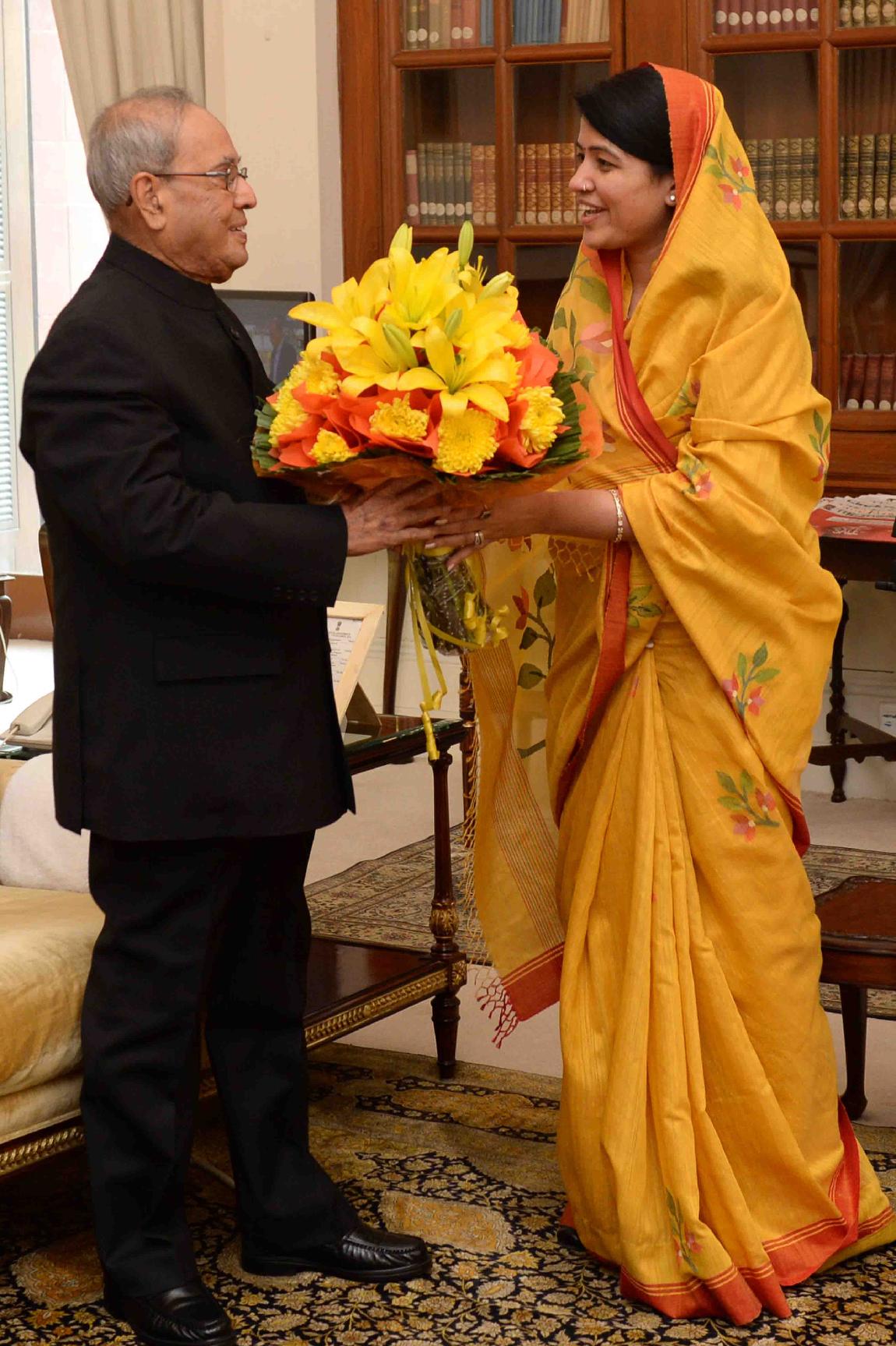 | Caption: | The President of India, Shri Pranab Mukherjee meeting with Smt. Riti Pathak, MP (LS), at Rashtrapati Bhavan on December 17, 2016. |