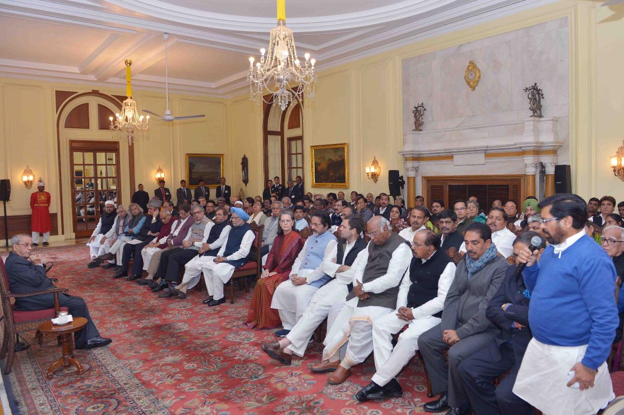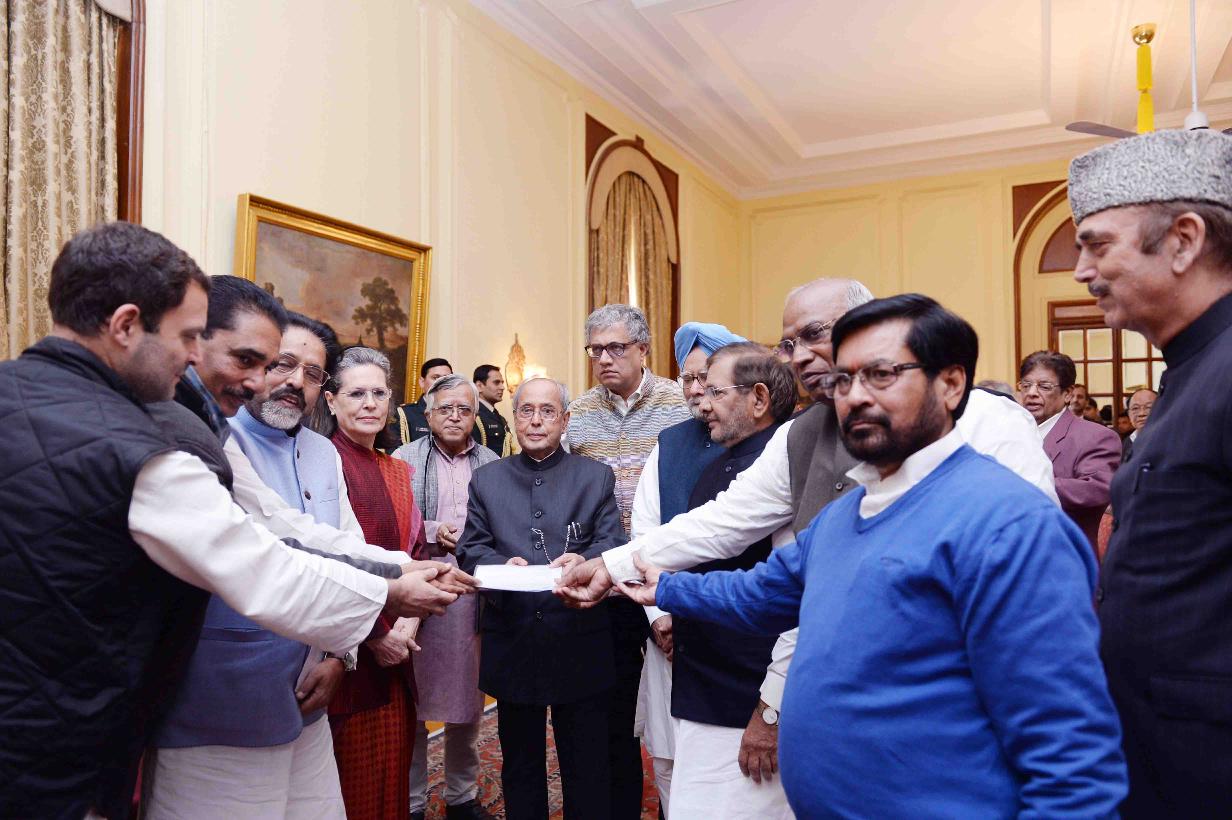 | Caption: | The President of India, Shri Pranab Mukherjee meeting with a delegation of Leaders & Members of Parliament (Lok Sabha & Rajya Sabha) of 15 Opposition Parties, at Rashtrapati Bhavan on December 16, 2016. |