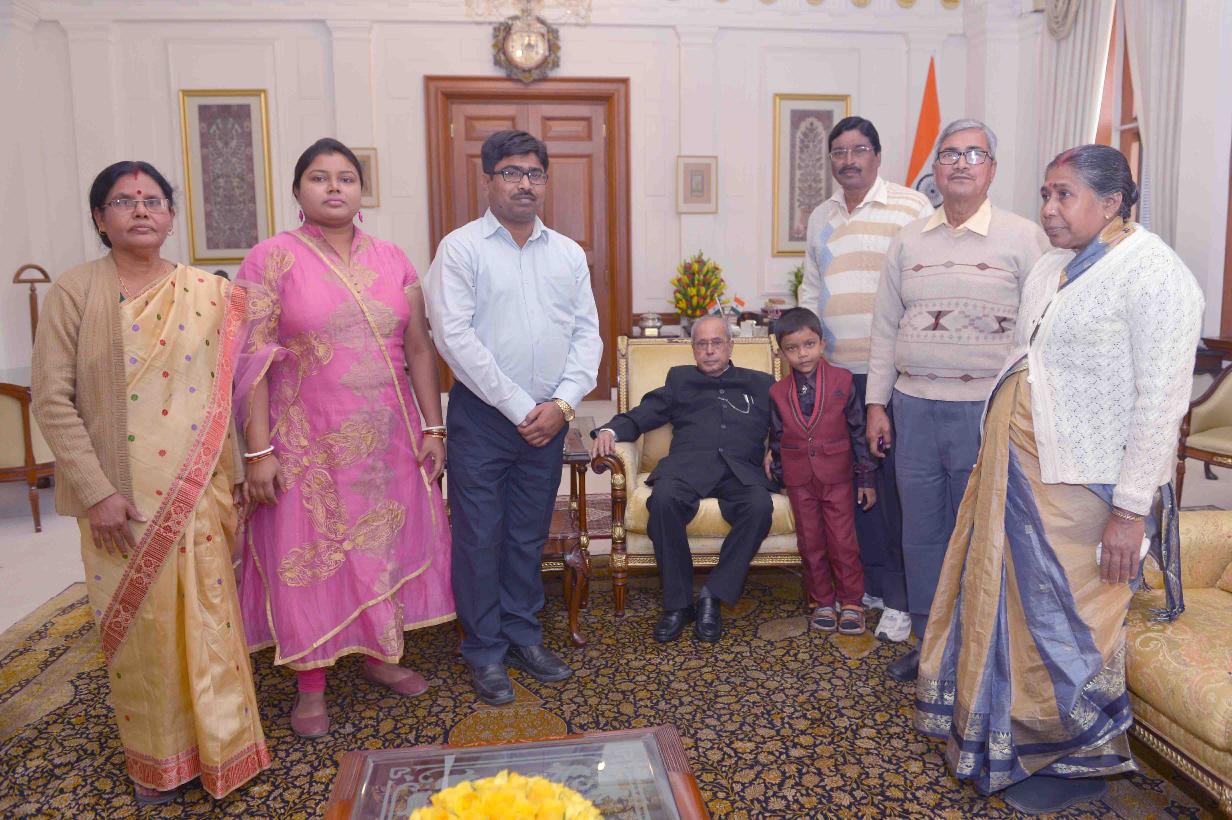 | Caption: | The President of India, Shri Pranab Mukherjee meeting with Shri Anand Lal Ghosh with others from Lalgola, Murshidabad, at Rashtrapati Bhavan on December 15, 2016. |