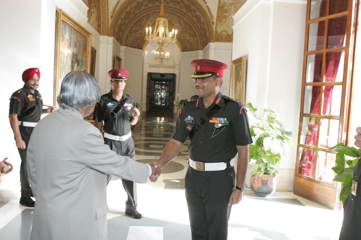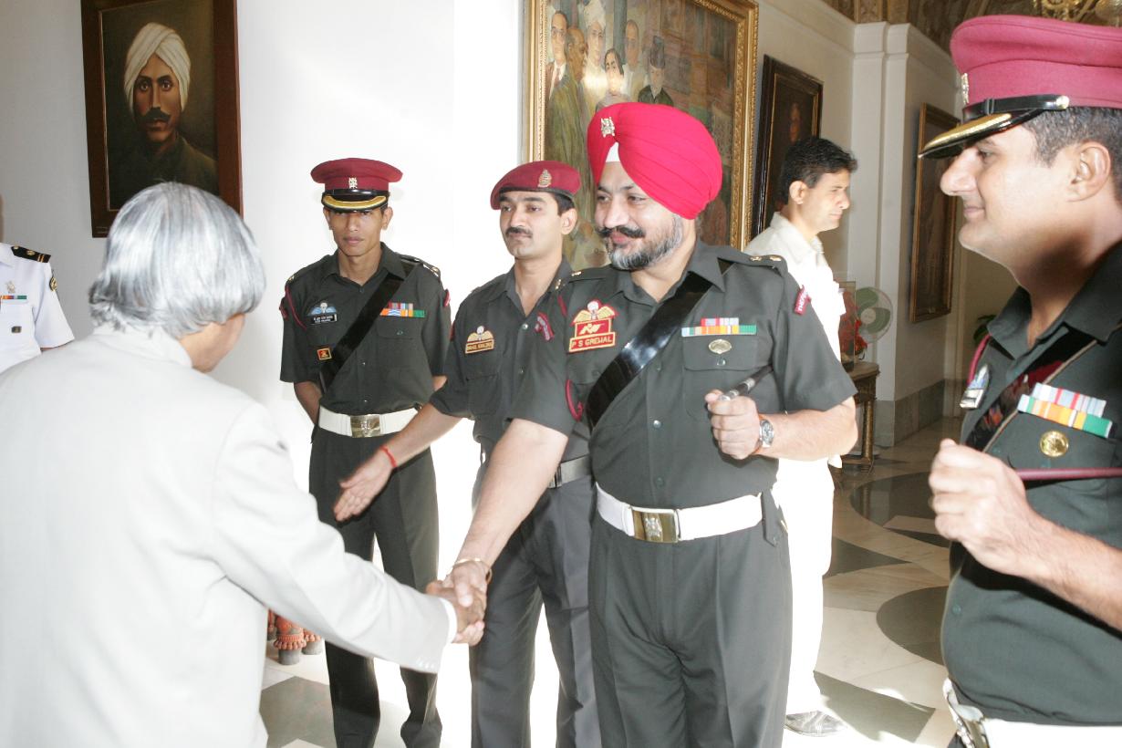 | Caption: | The President of India, Dr A P J Abdul Kalam meeting with the PBG Staff Officer at Rashtrapati Bhavan in New Delhi on Oct 12, 2006 |
