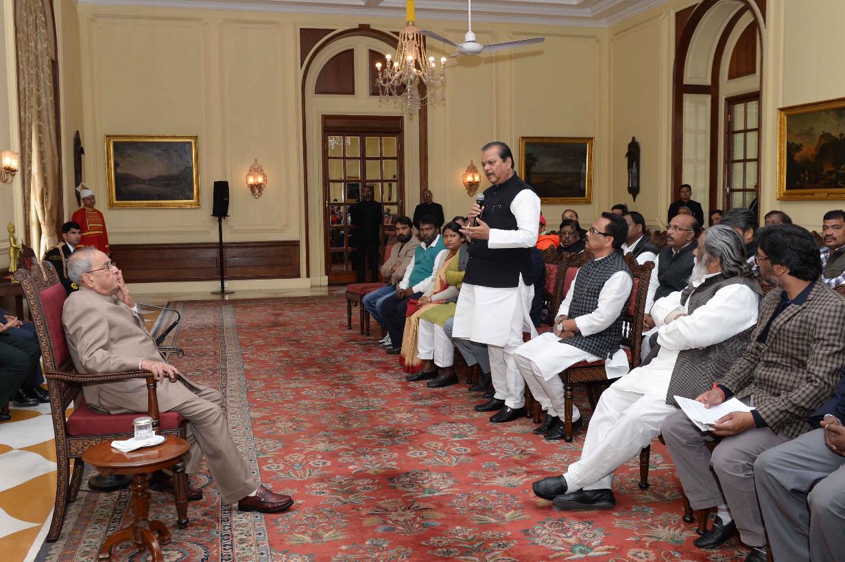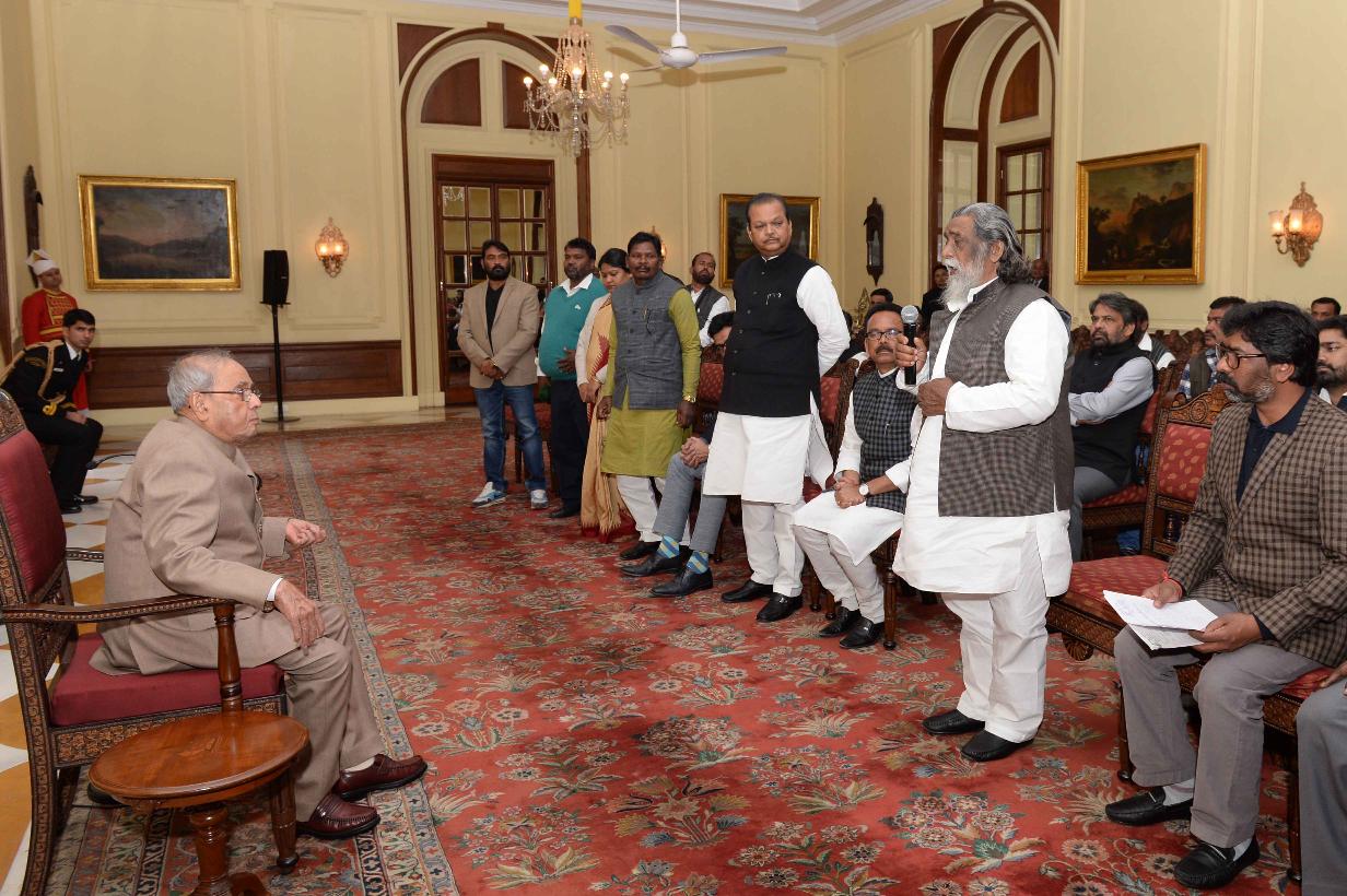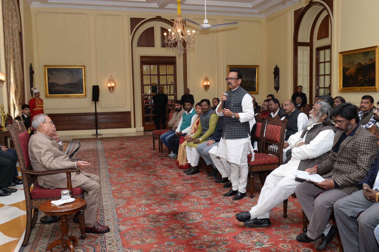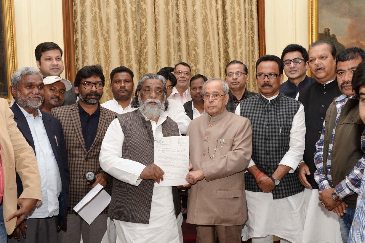 | Caption: | The President of India, Shri Pranab Mukherjee meeting with a delegation of MPs and MLAs of Opposition parties from Jharkhand led by Shri Shibu Soren, MP (LS) & President, Jharkhand Mukti Morcha, at Rashtrapati Bhavan on December 21, 2016. |