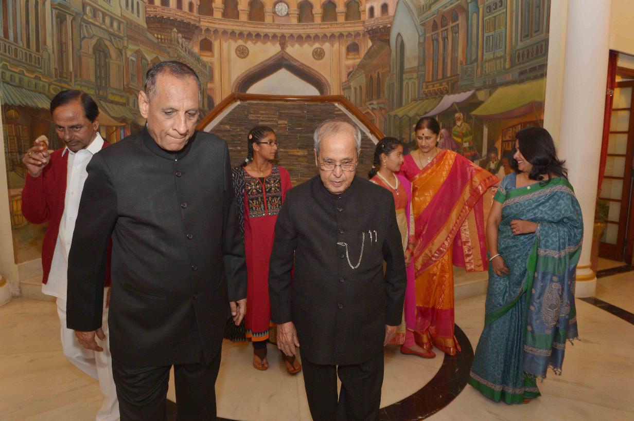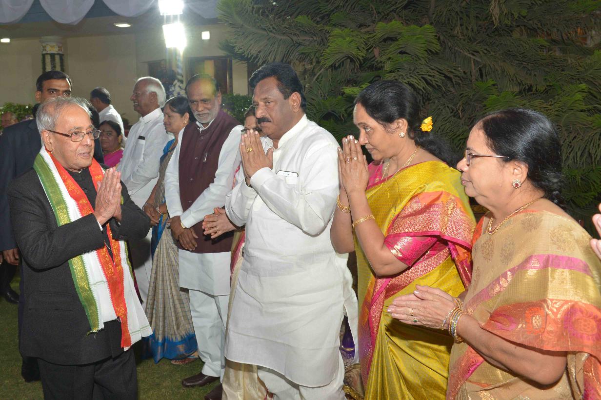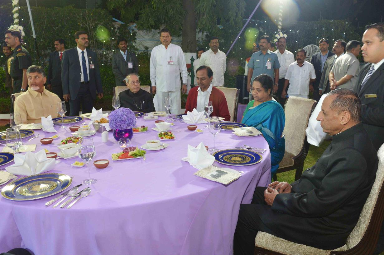 | Caption: | The President of India, Shri Pranab Mukherjee at the dinner hosted by the Governor of Telangana and Andhra Pradesh, Shri E.S.L. Narasimhan, at Raj Bhavan, Hyderabad on December 27, 2016. |