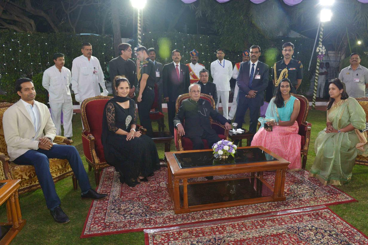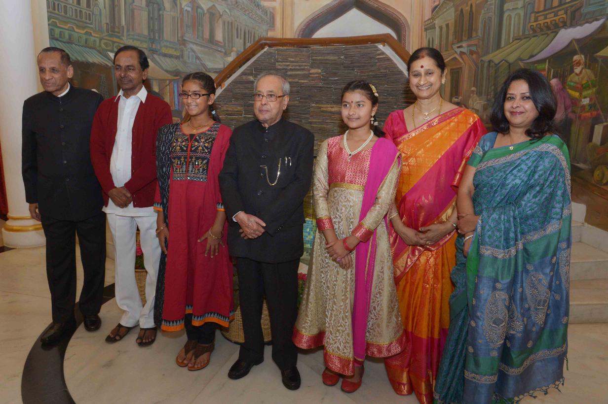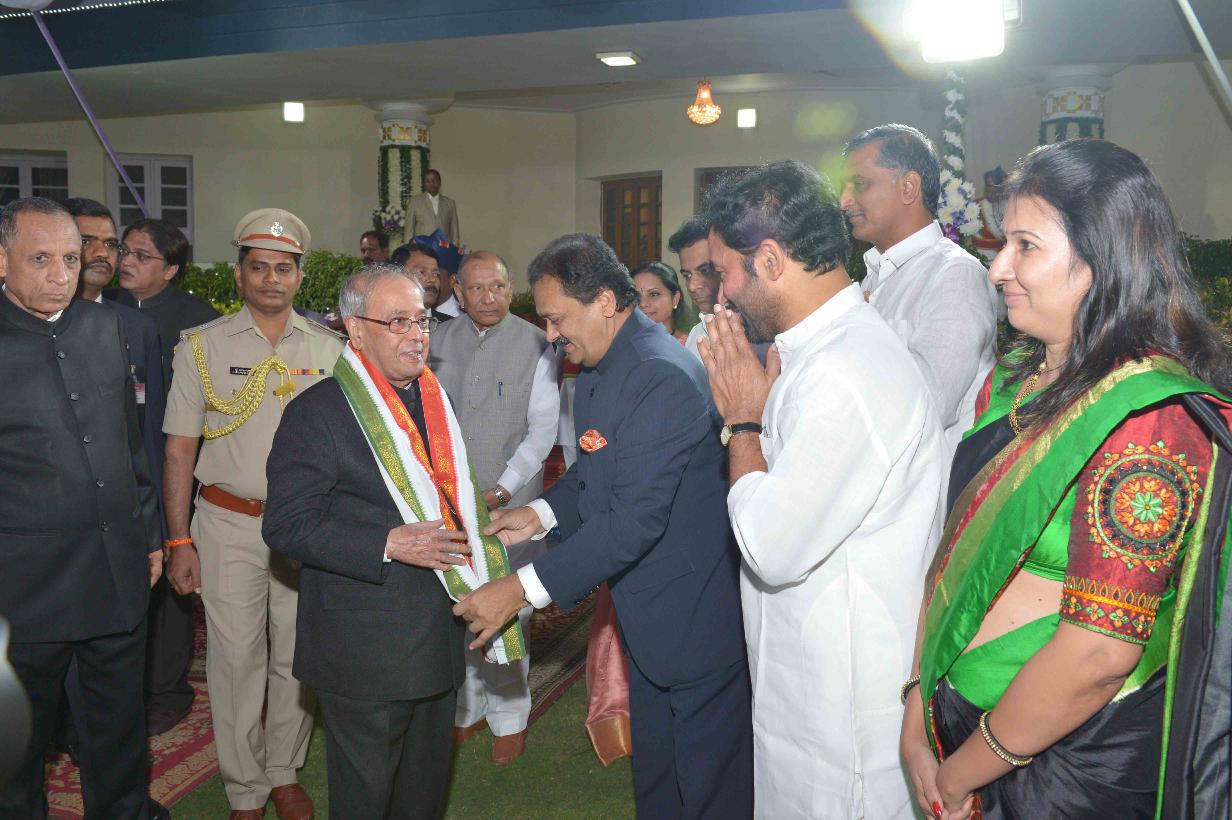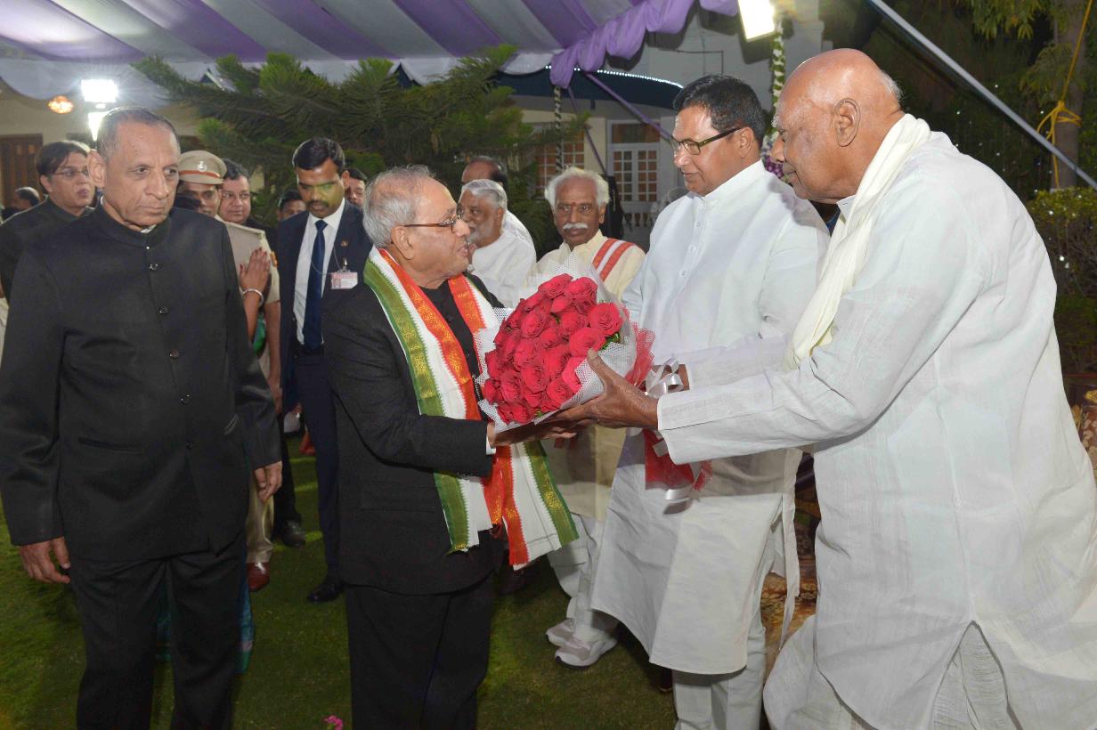 | Caption: | The President of India, Shri Pranab Mukherjee at the dinner hosted by the Governor of Telangana and Andhra Pradesh, Shri E.S.L. Narasimhan, at Raj Bhavan, Hyderabad on December 27, 2016. |