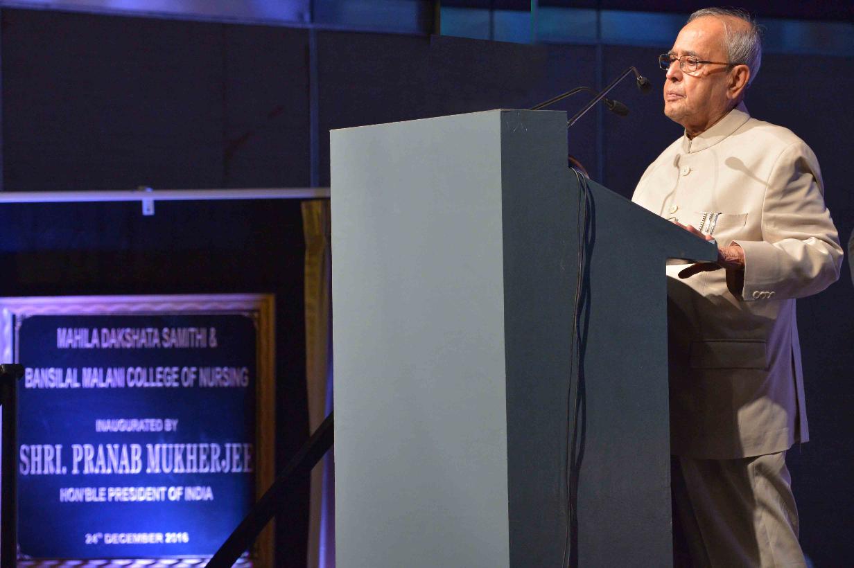 | Caption: | The President of India, Shri Pranab Mukherje addressing at the inauguration of the Mahila Dakshata Samiti and Bansilal Malani College of Nursing, at Chanda Nagar, in Hyderabad, Telangana on December 24, 2016. |