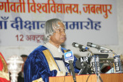 | Caption: | The President of India, Dr A P J Abdul Kalam addressing at the Convocation of Rani Durgavati Vishwavidyalaya and presenting Degree to Students at Jabalpur in Madhya Pradesh on Oct 12, 2006 |